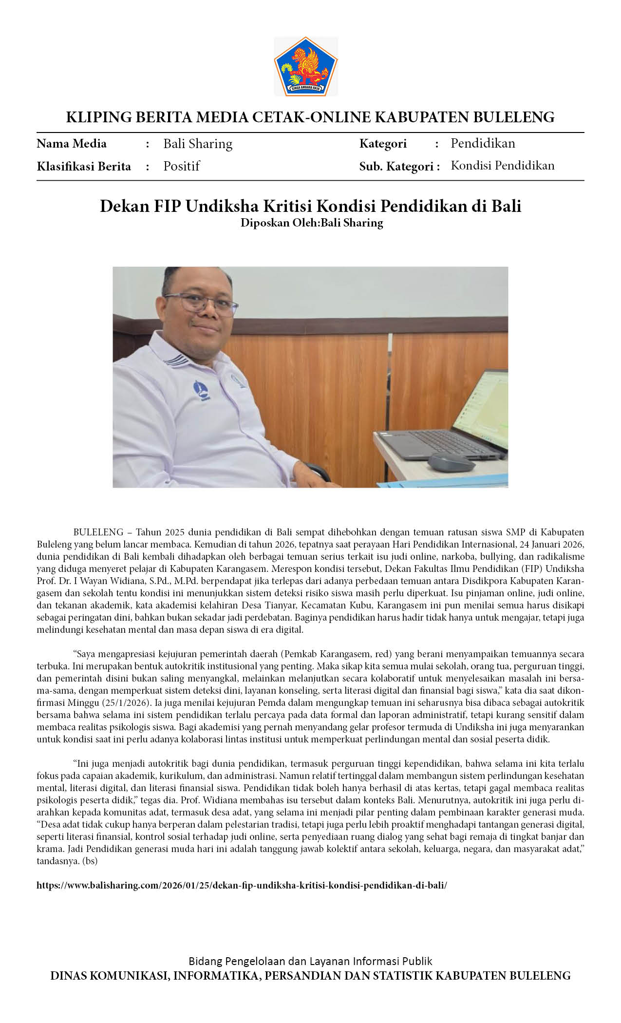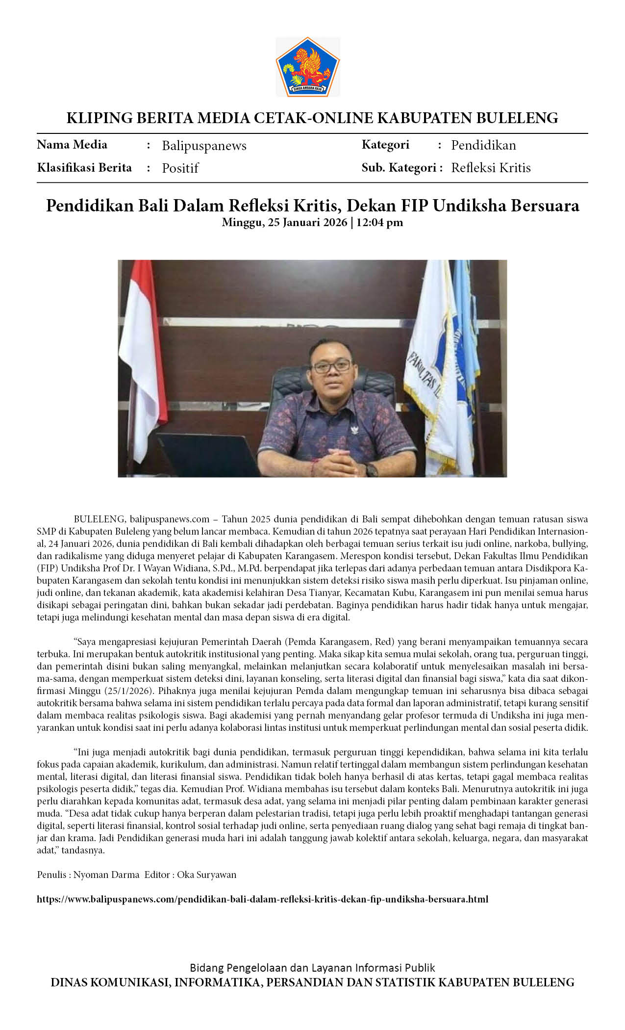 DEKAN FIP UNDIKSHA KRITISI KONDISI PENDIDIKAN DI BALI