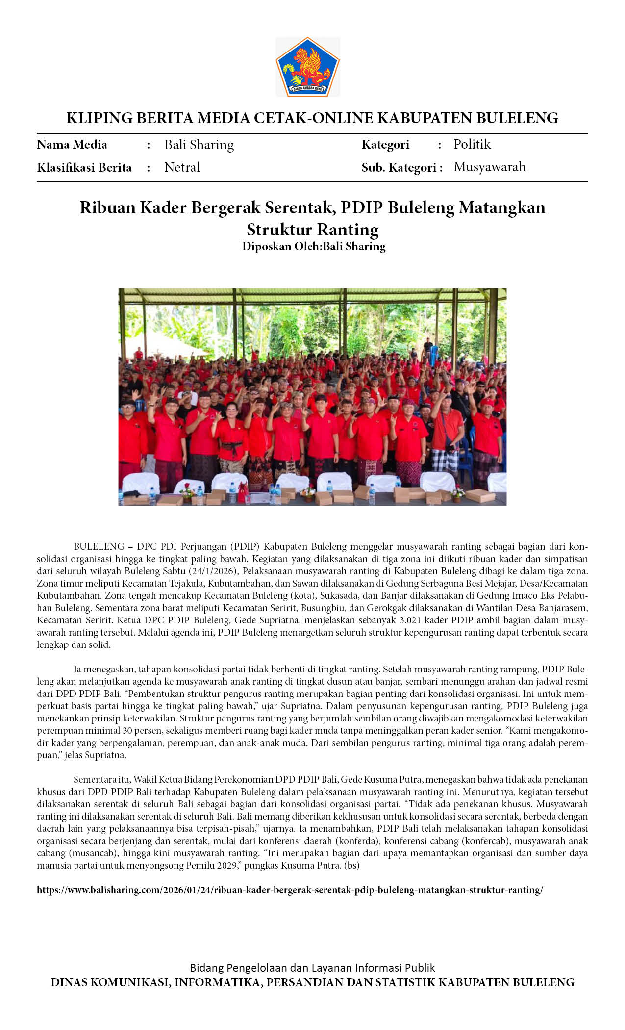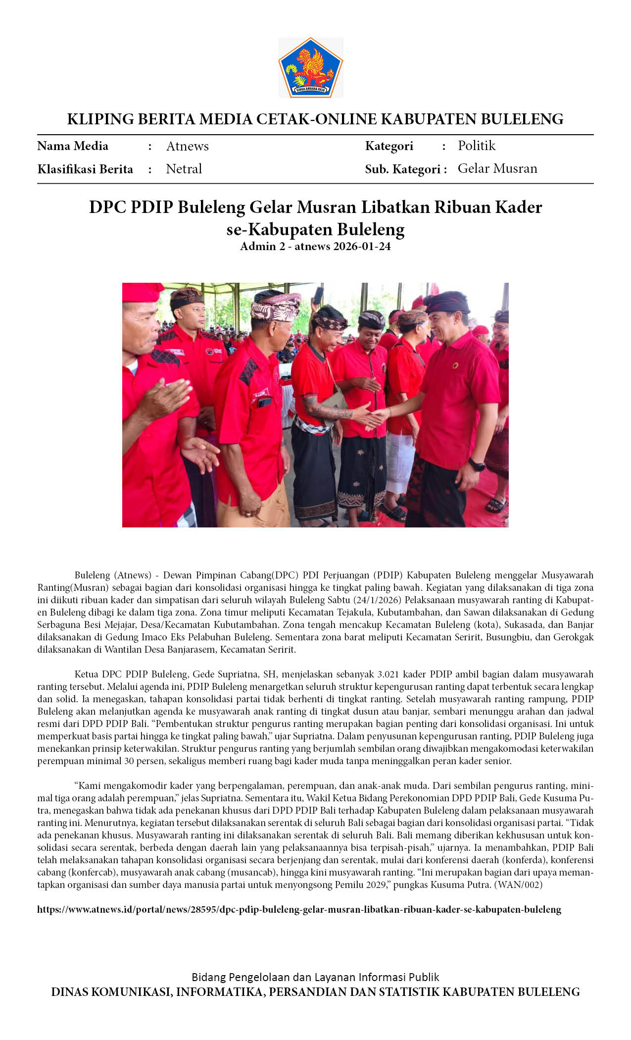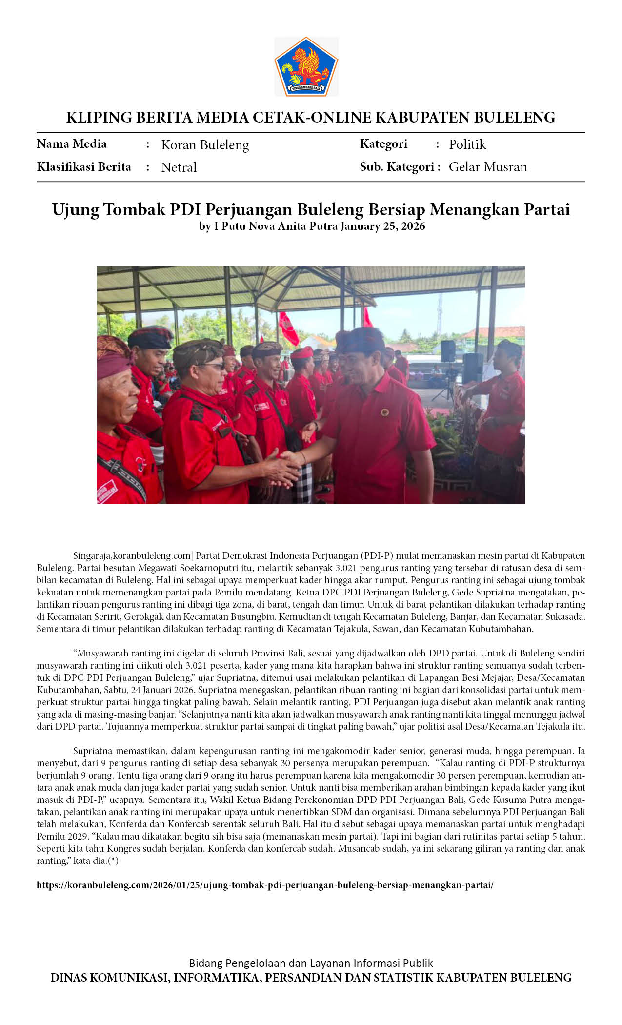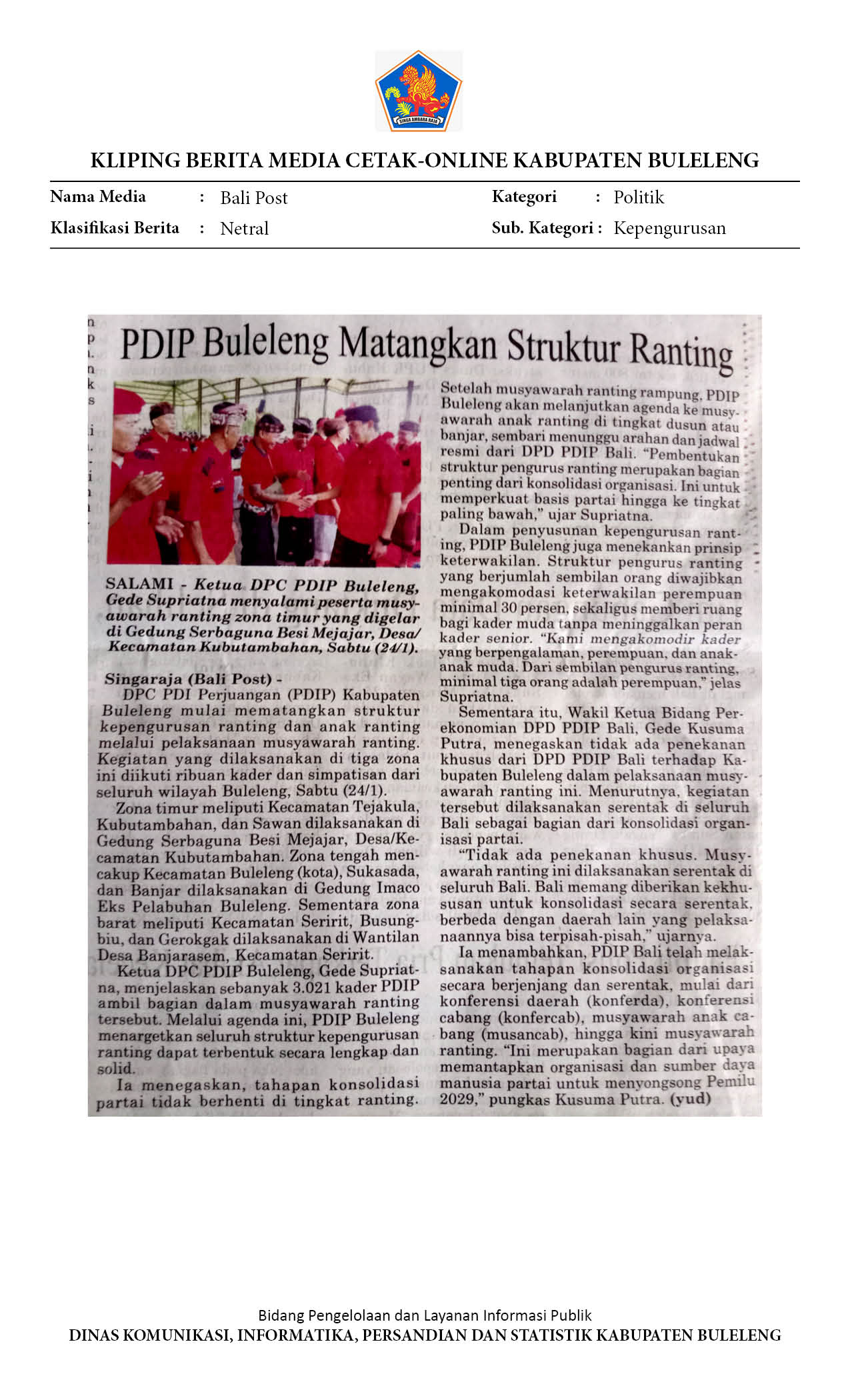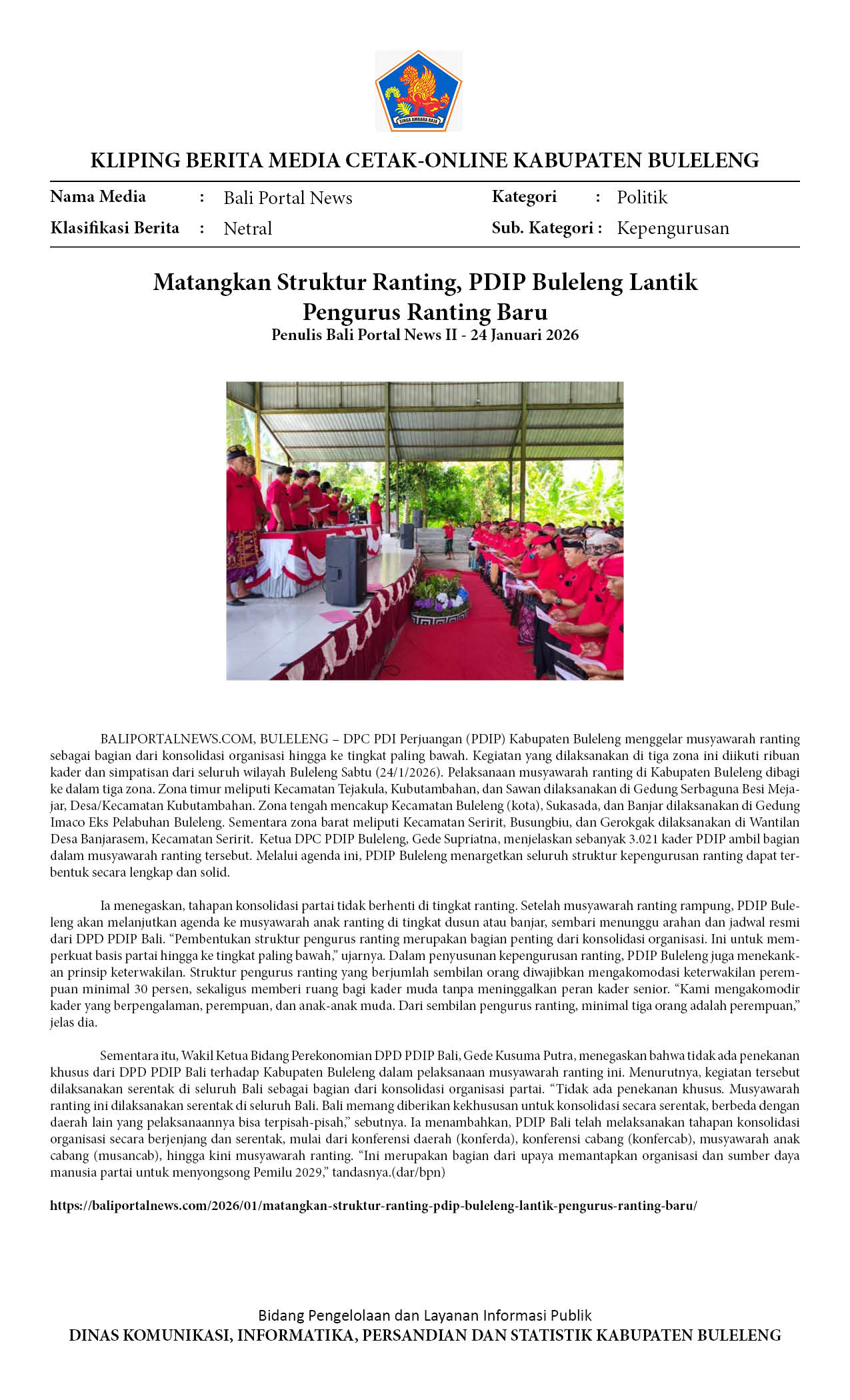 3.021 PENGURUS RANTING PDIP BULELENG DILANTIK SERENTAK