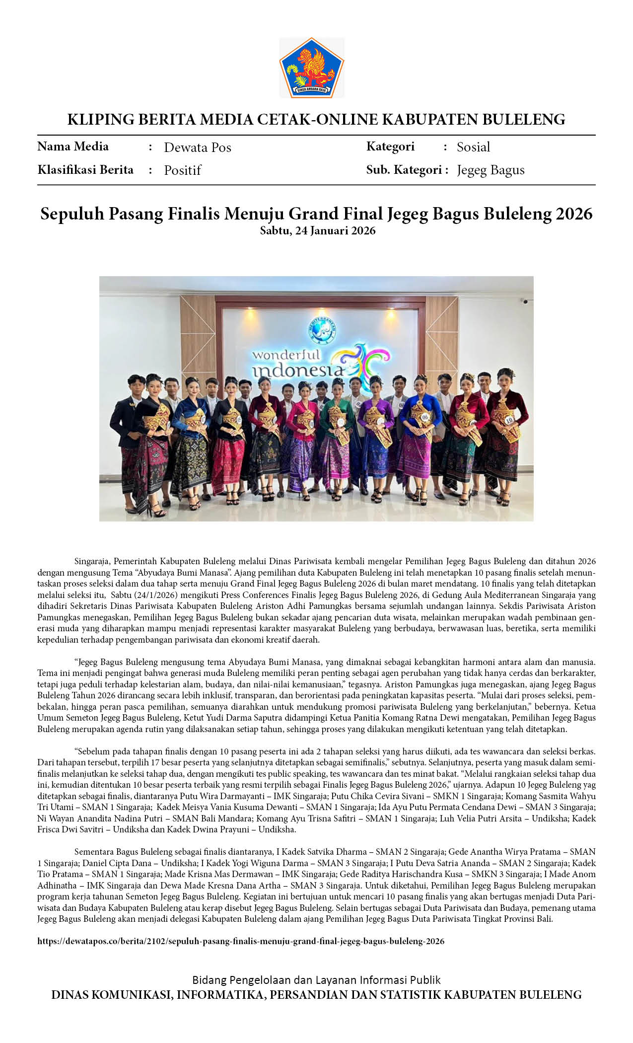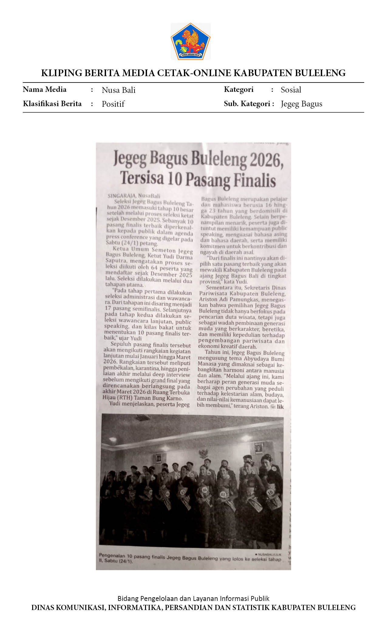 SEPULUH PASANG FINALIS MENUJU GRAND FINAL JEGEG BAGUS BULELENG 2026