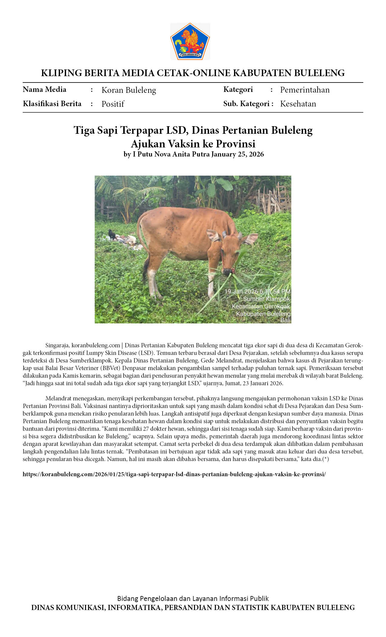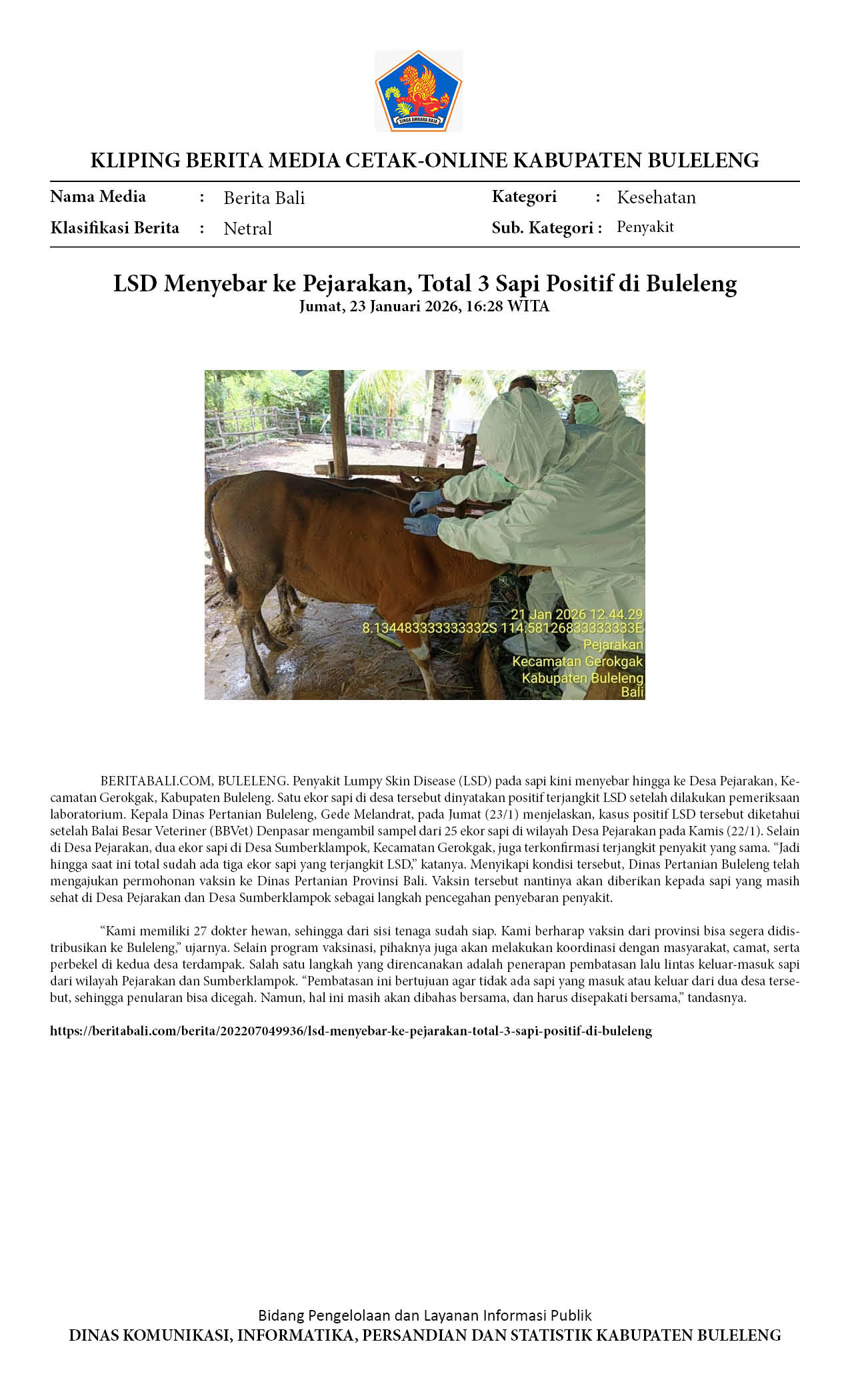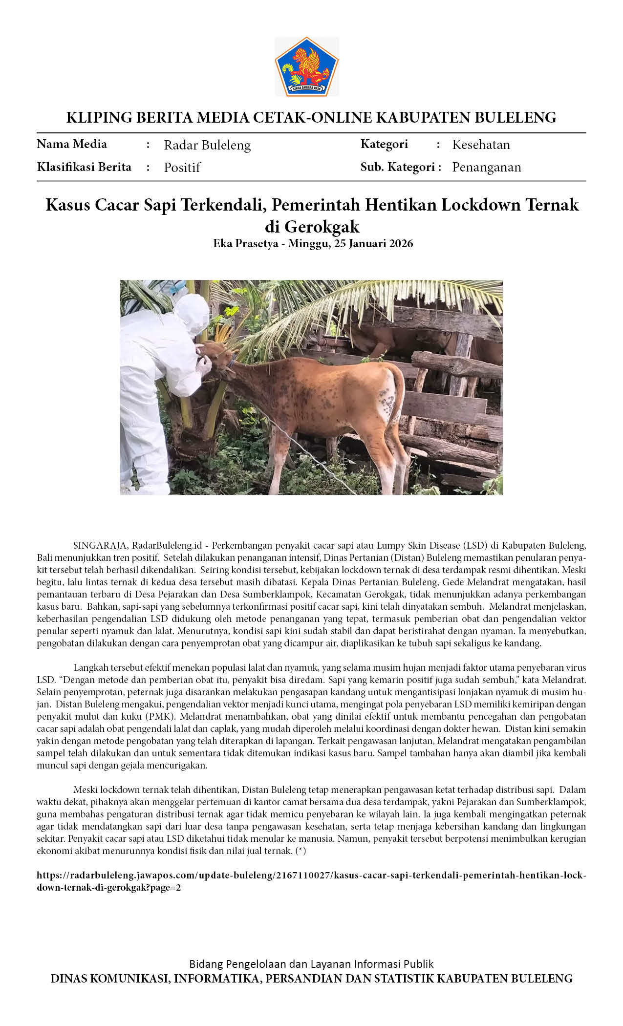 SAPI POSITIF LSD DI GEROKGAK SEMBUH