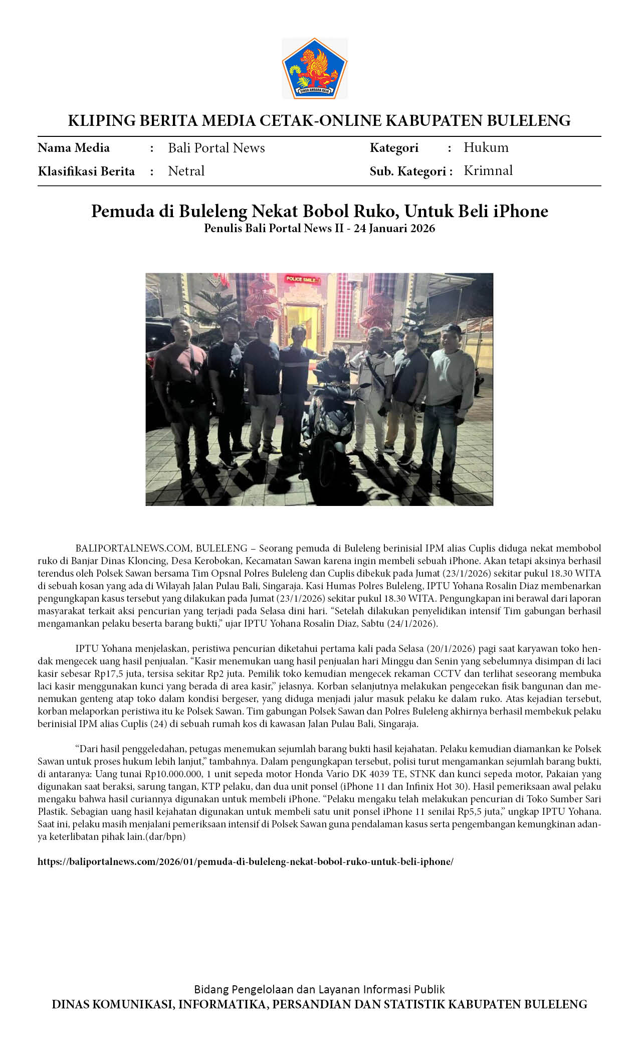 PEMUDA DI BULELENG NEKAT BOBOL RUKO, UNTUK BELI IPHONE