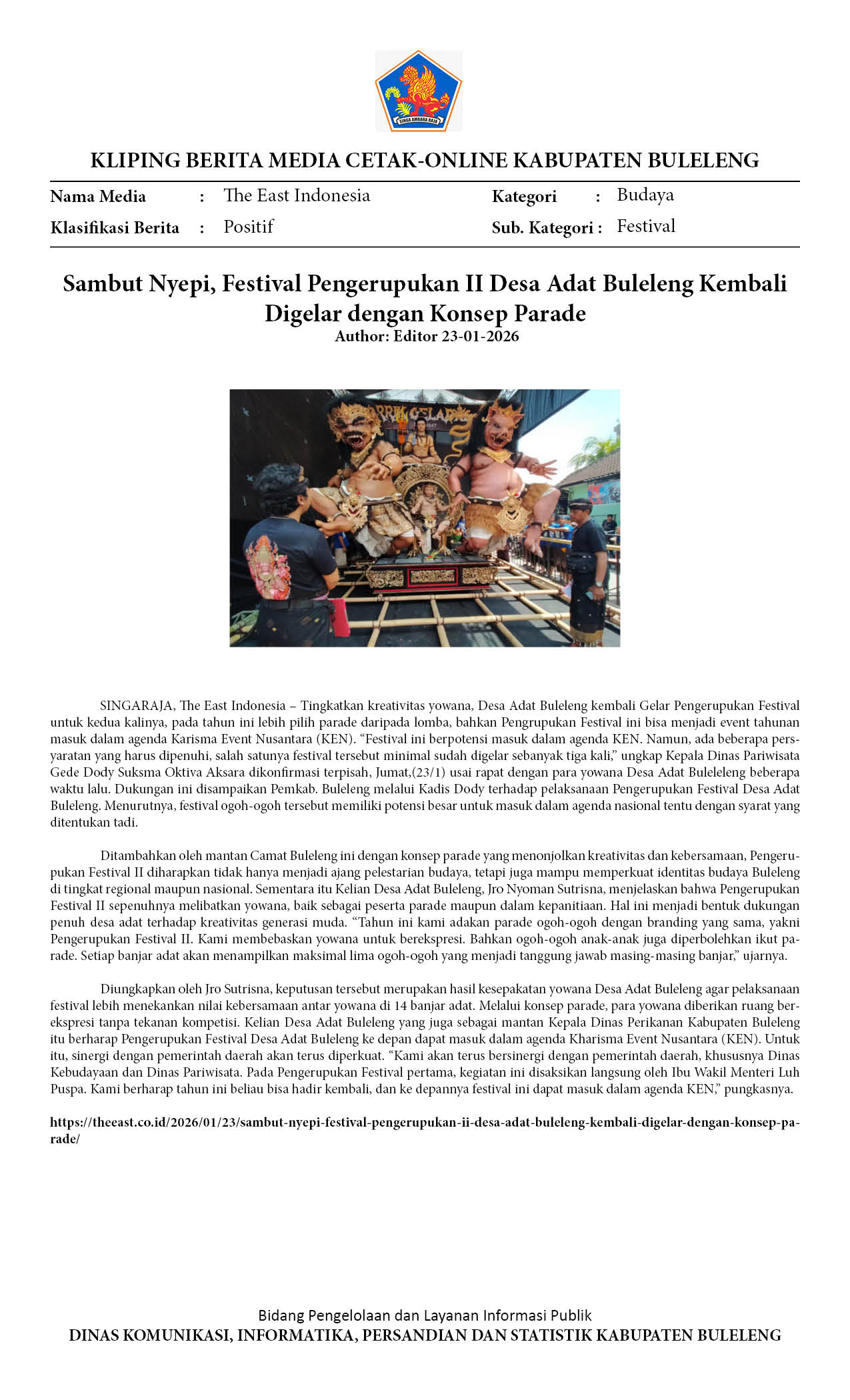FESTIVAL PENGERUPUKAN II DESA ADAT BULELENG DIGELAR DENGAN KONSEP PARADE