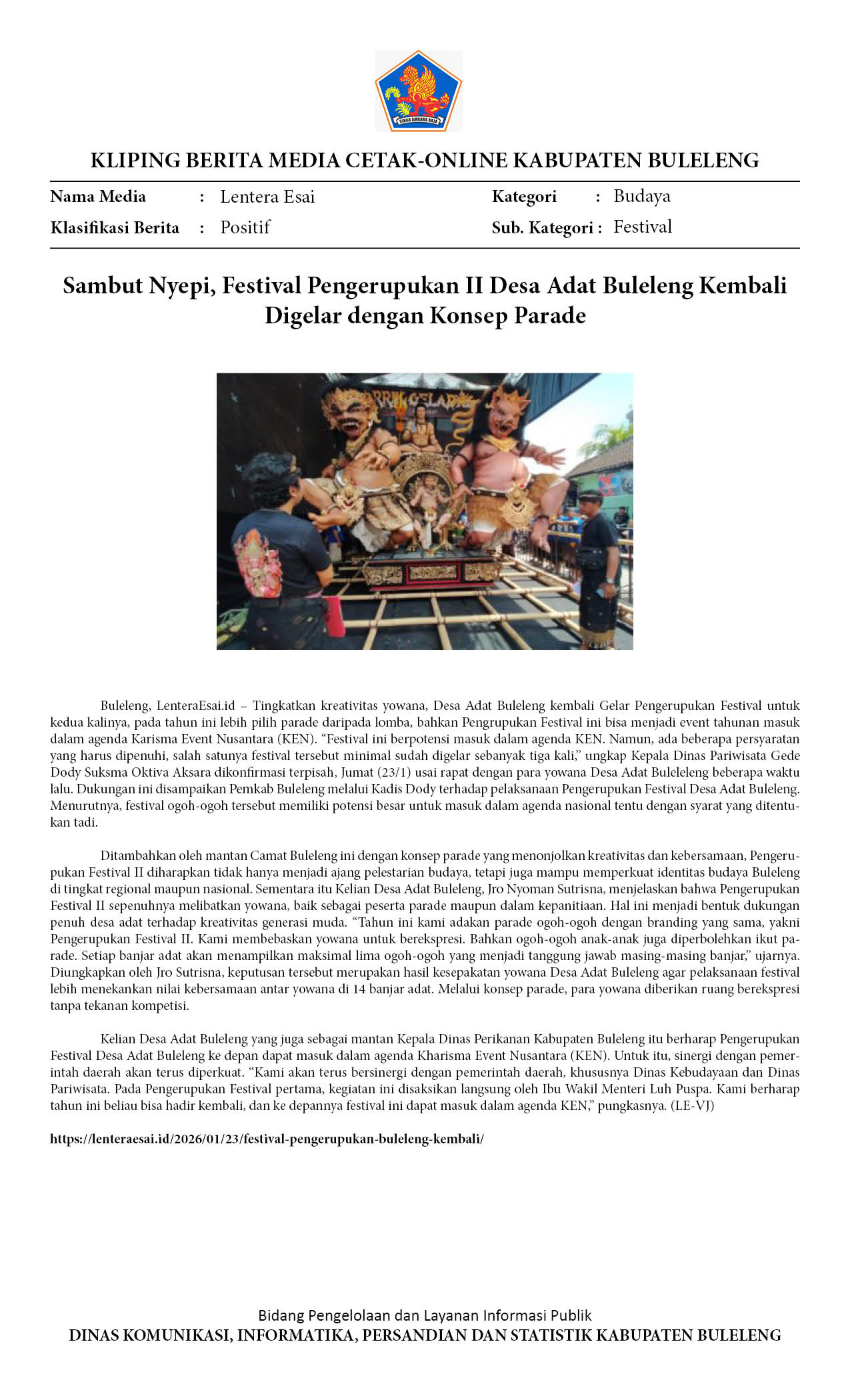 SAMBUT NYEPI, FESTIVAL PENGERUPUKAN II DESA ADAT BULELENG KEMBALI DIGELAR DENGAN KONSEP PARADE
