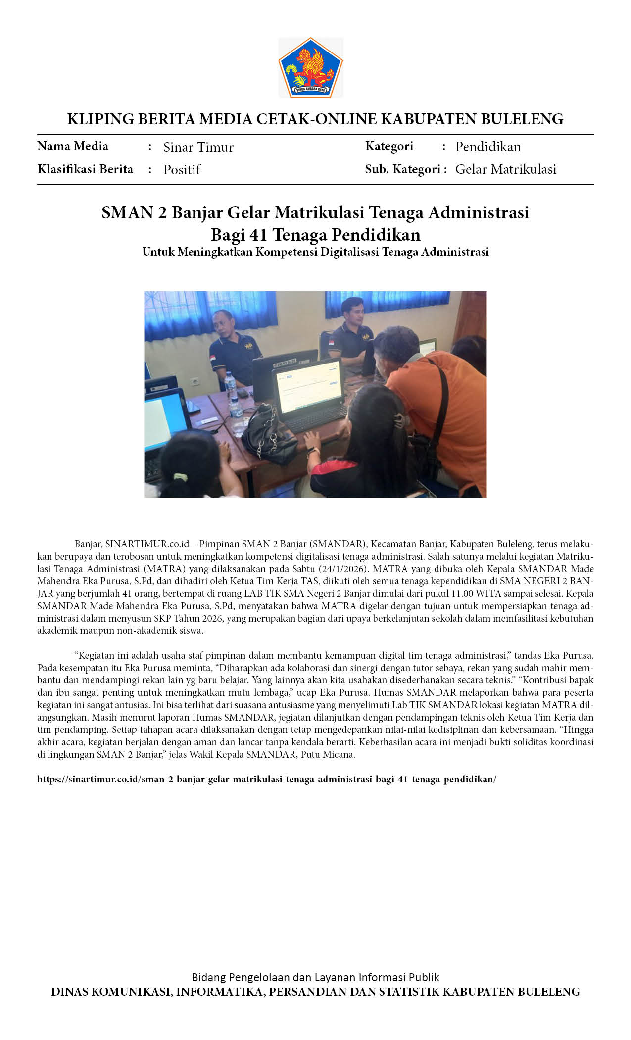 SMAN 2 BANJAR GELAR MATRIKULASI TENAGA ADMINISTRASI BAGI 41 TENAGA PENDIDIKAN