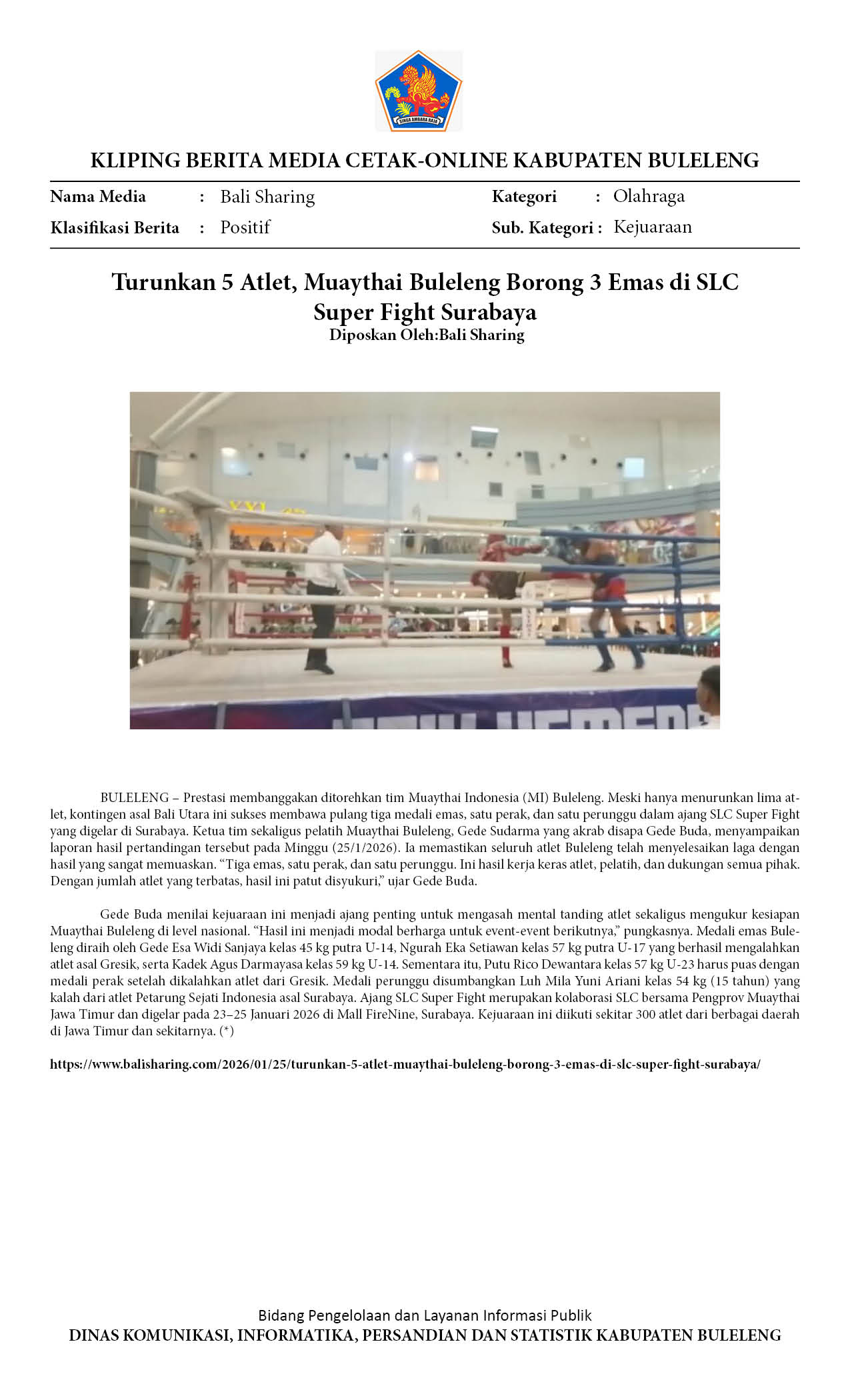 TURUNKAN 5 ATLET, MUAYTHAI BULELENG BORONG 3 EMAS DI SLC SUPER FIGHT SURABAYA