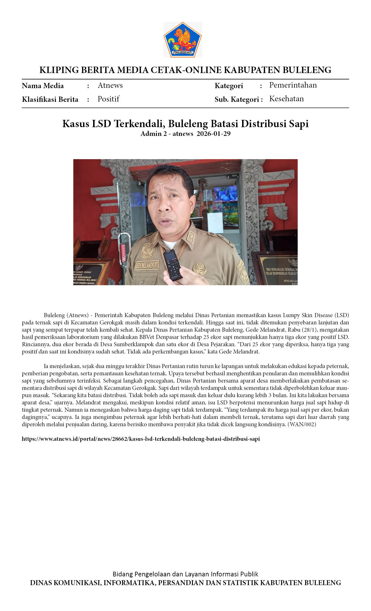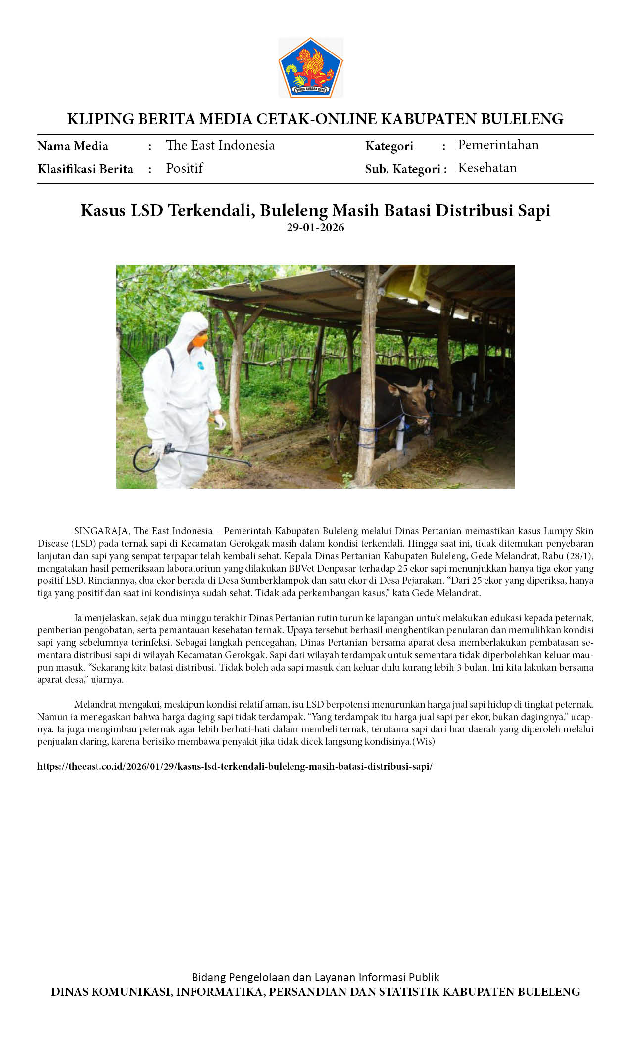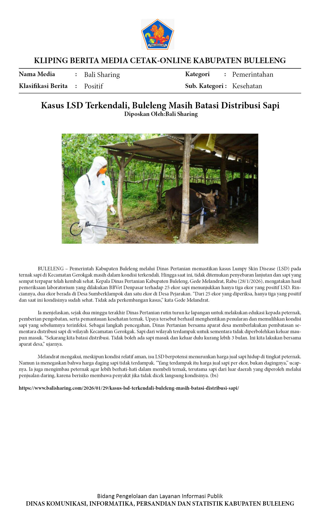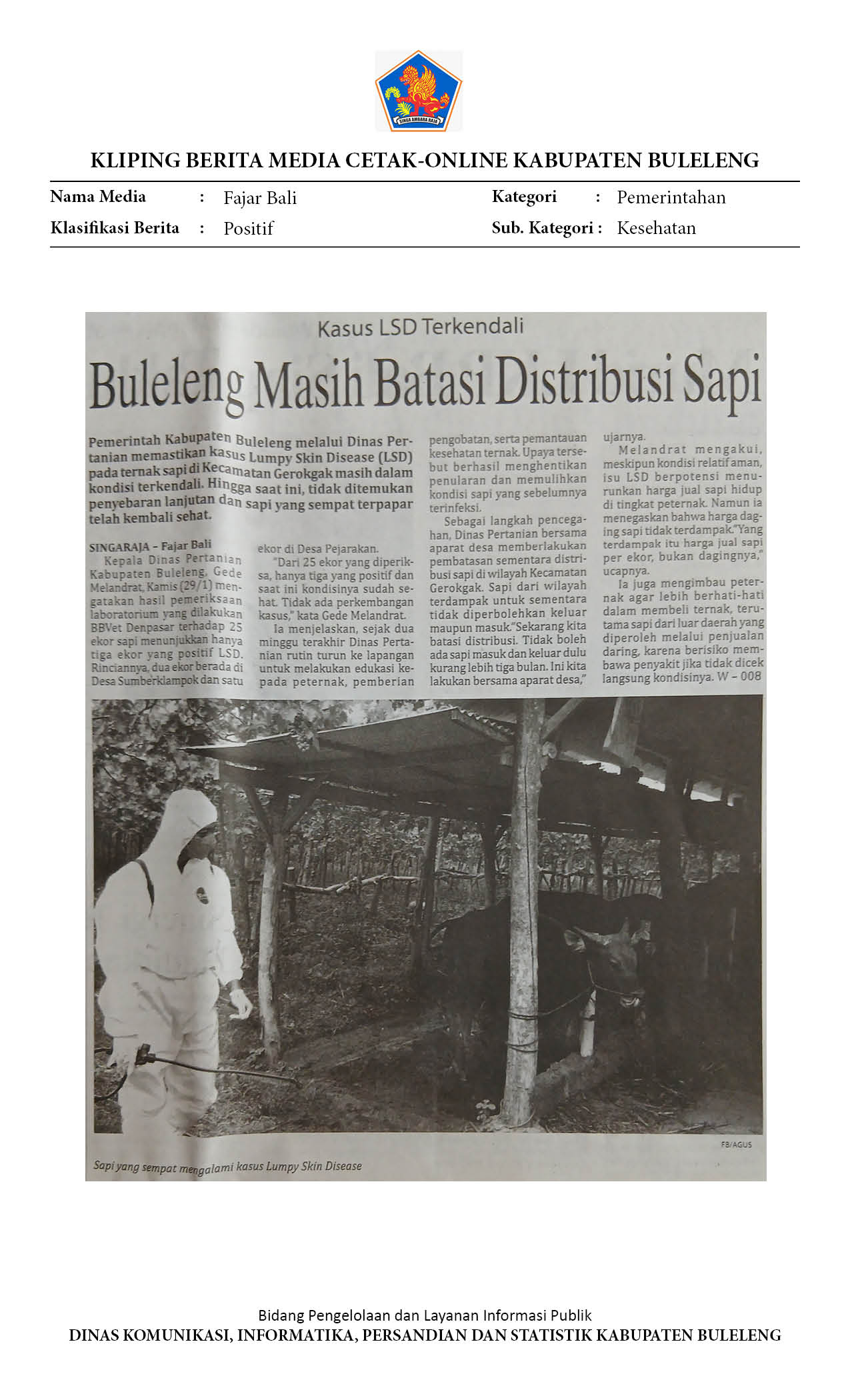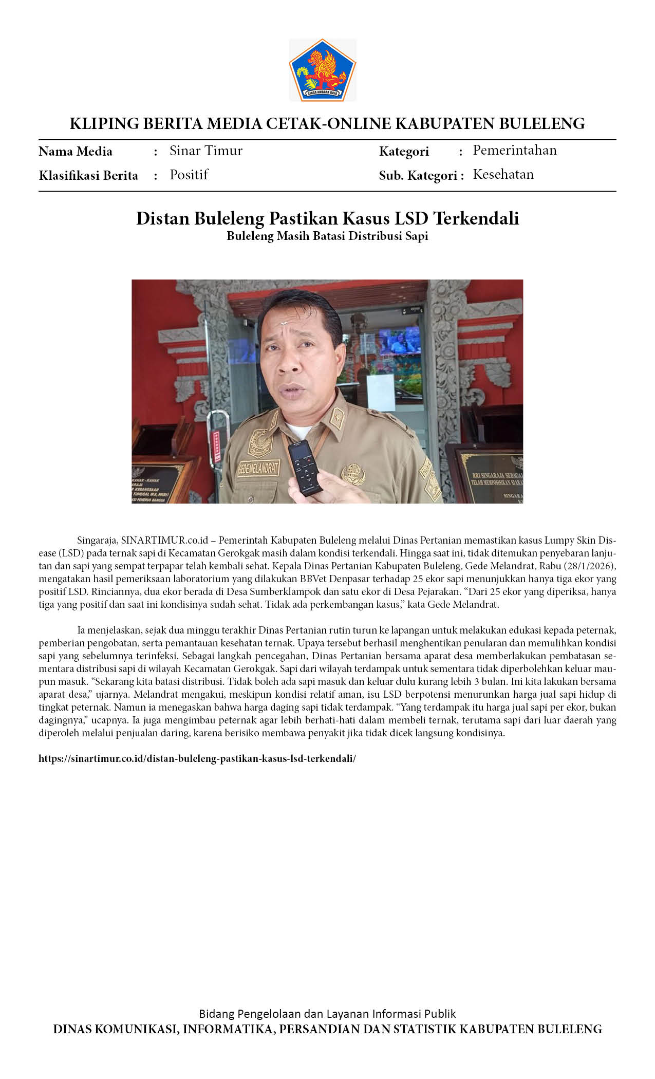 KASUS LSD DI BULELENG TERKENDALI, DISTAN IMBAU WARGA TAK TERGIUR HARGA MURAH