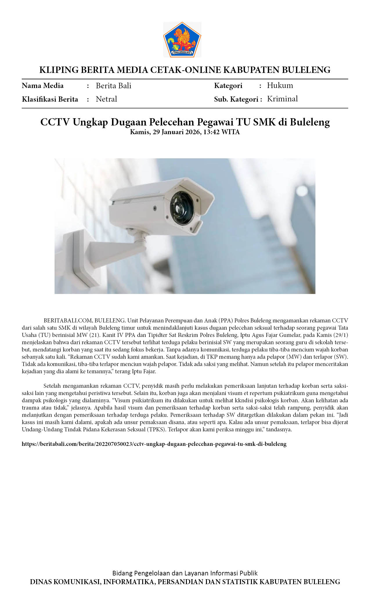 CCTV UNGKAP DUGAAN PELECEHAN PEGAWAI TU SMK DI BULELENG