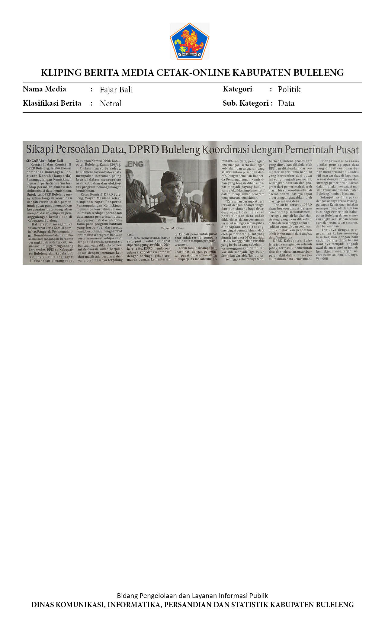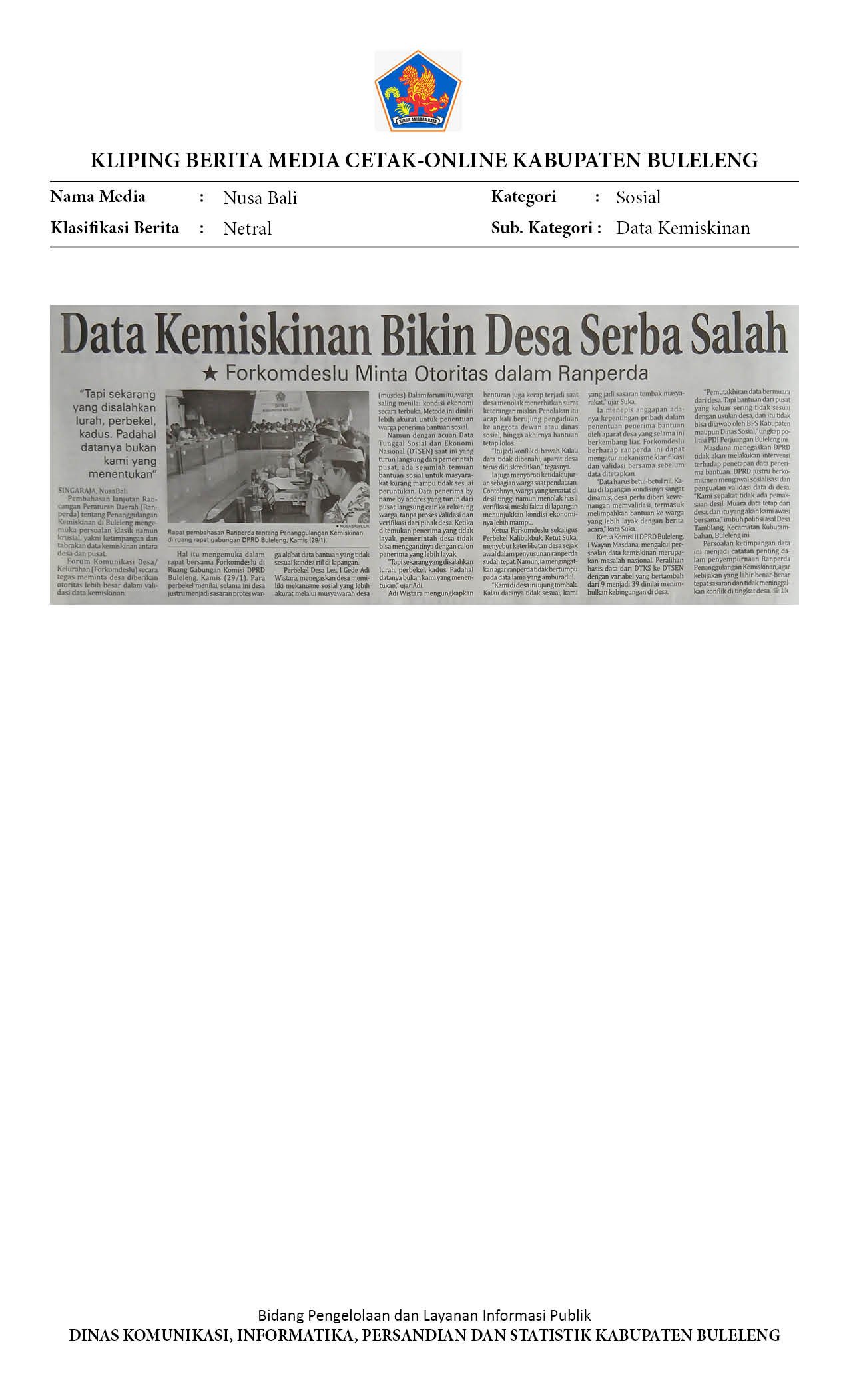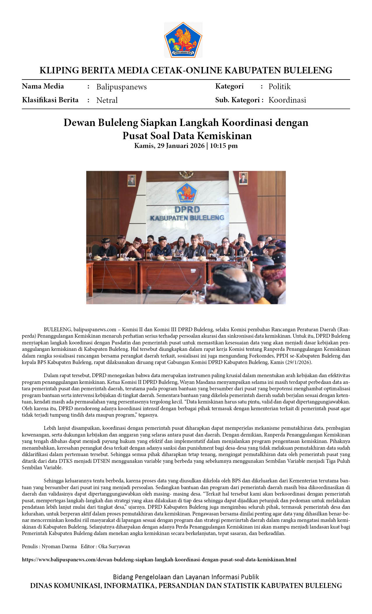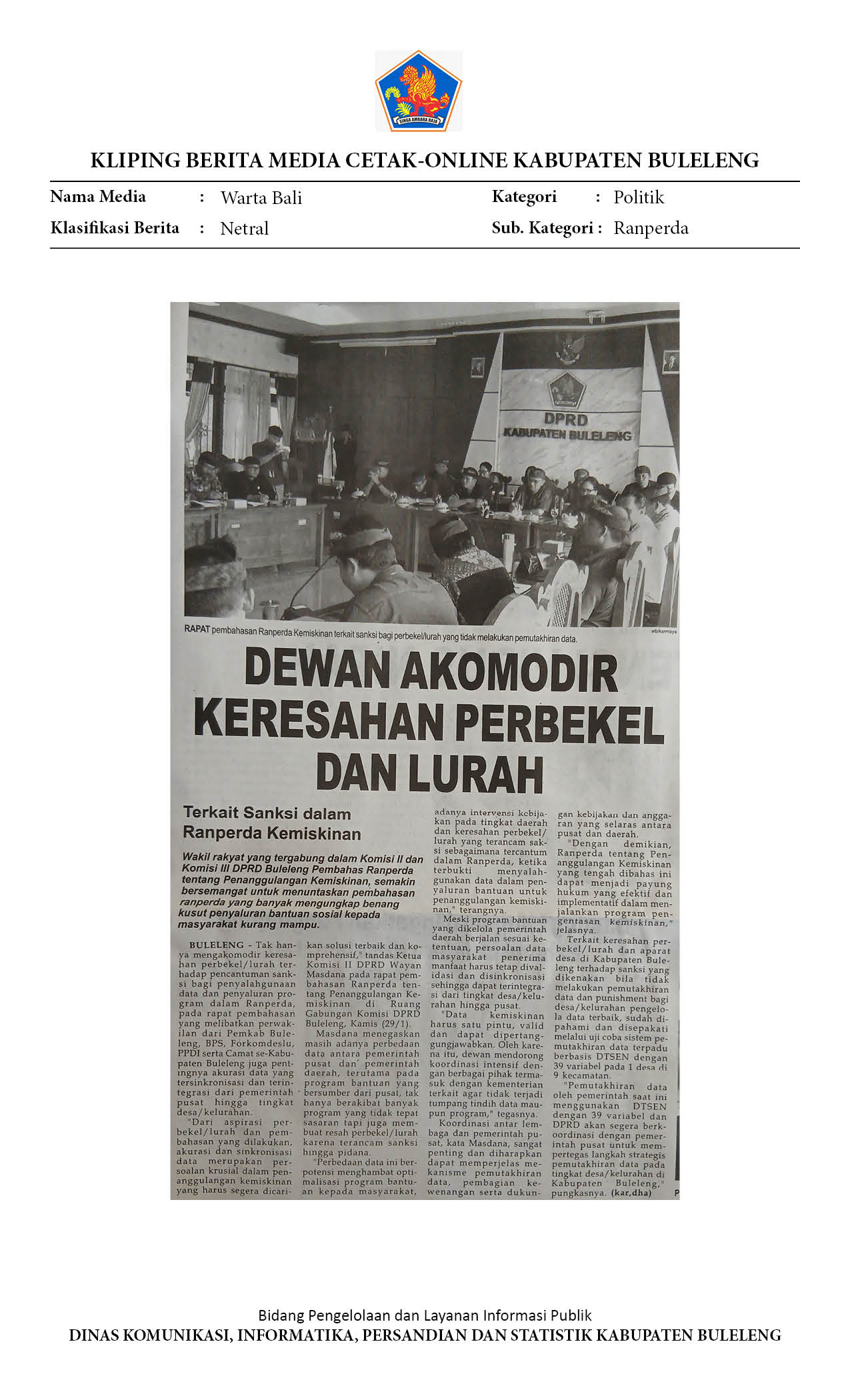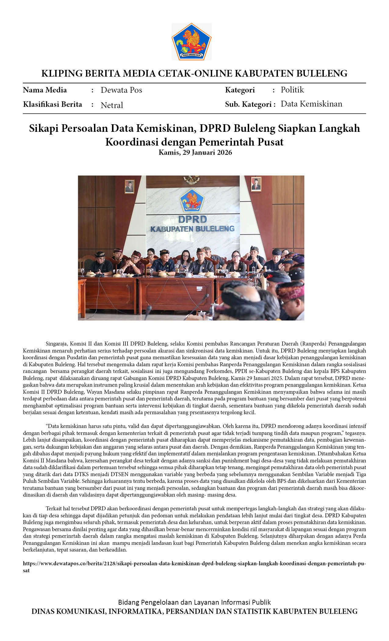 DEWAN BULELENG SIAPKAN LANGKAH KOORDINASI DENGAN PUSAT SOAL DATA KEMISKINAN