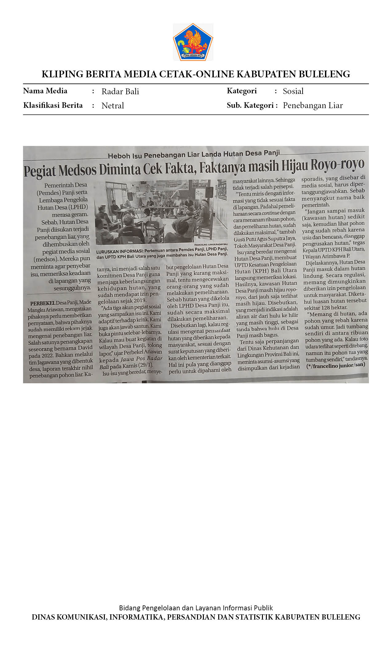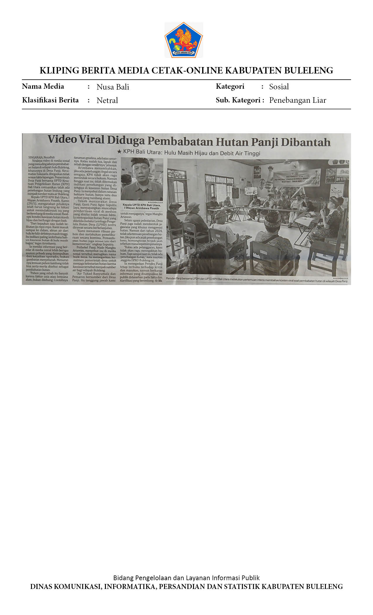 VIRAL DI MEDSOS, KPH BALI UTARA PASTIKAN HUTAN DESA PANJI MASIH TERJAGA