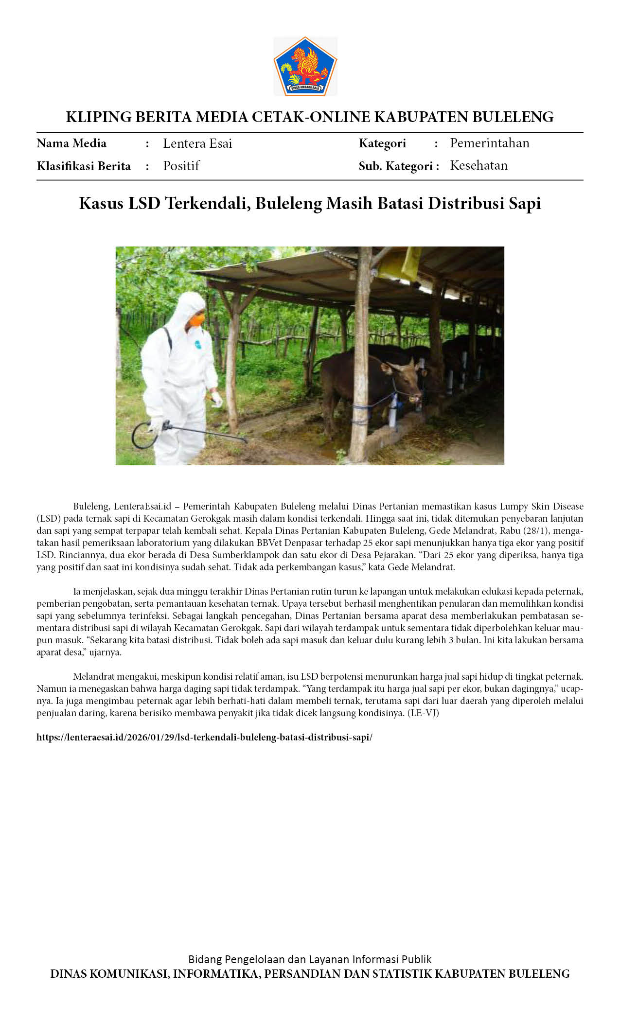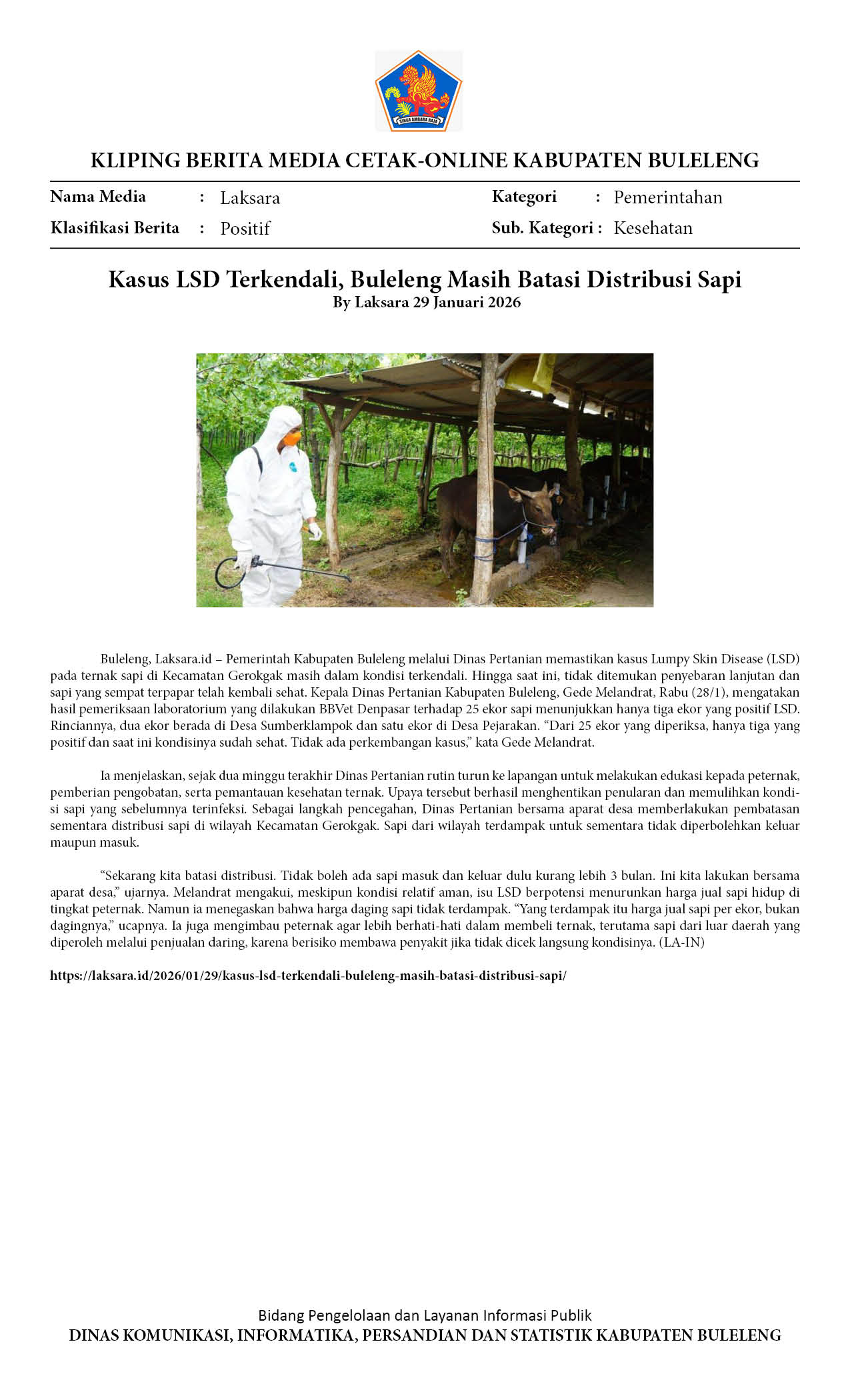 DISTAN BULELENG PASTIKAN KASUS LSD TERKENDALI
