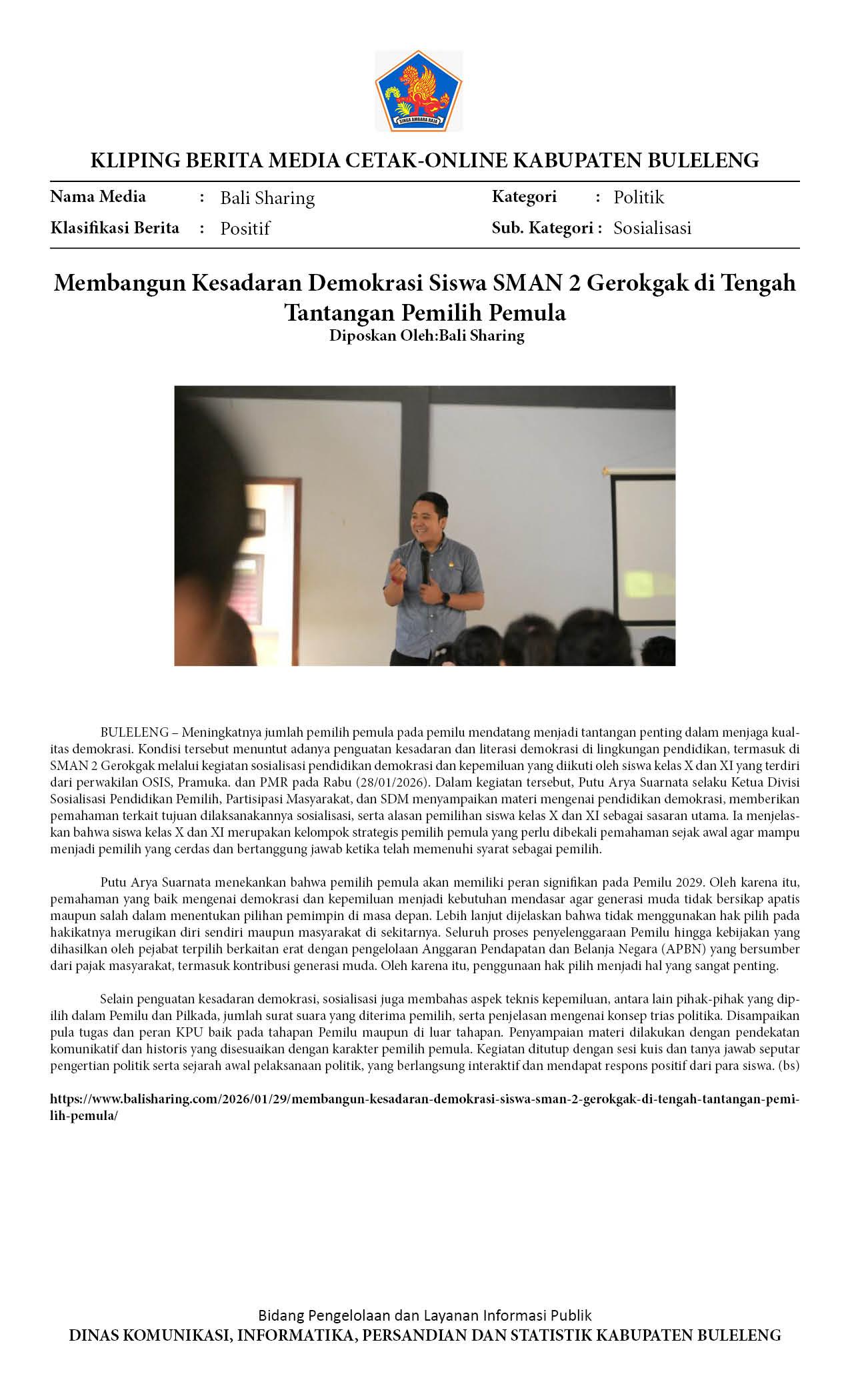 MEMBANGUN KESADARAN DEMOKRASI SISWA SMAN 2 GEROKGAK DI TENGAH TANTANGAN PEMILIH PEMULA
