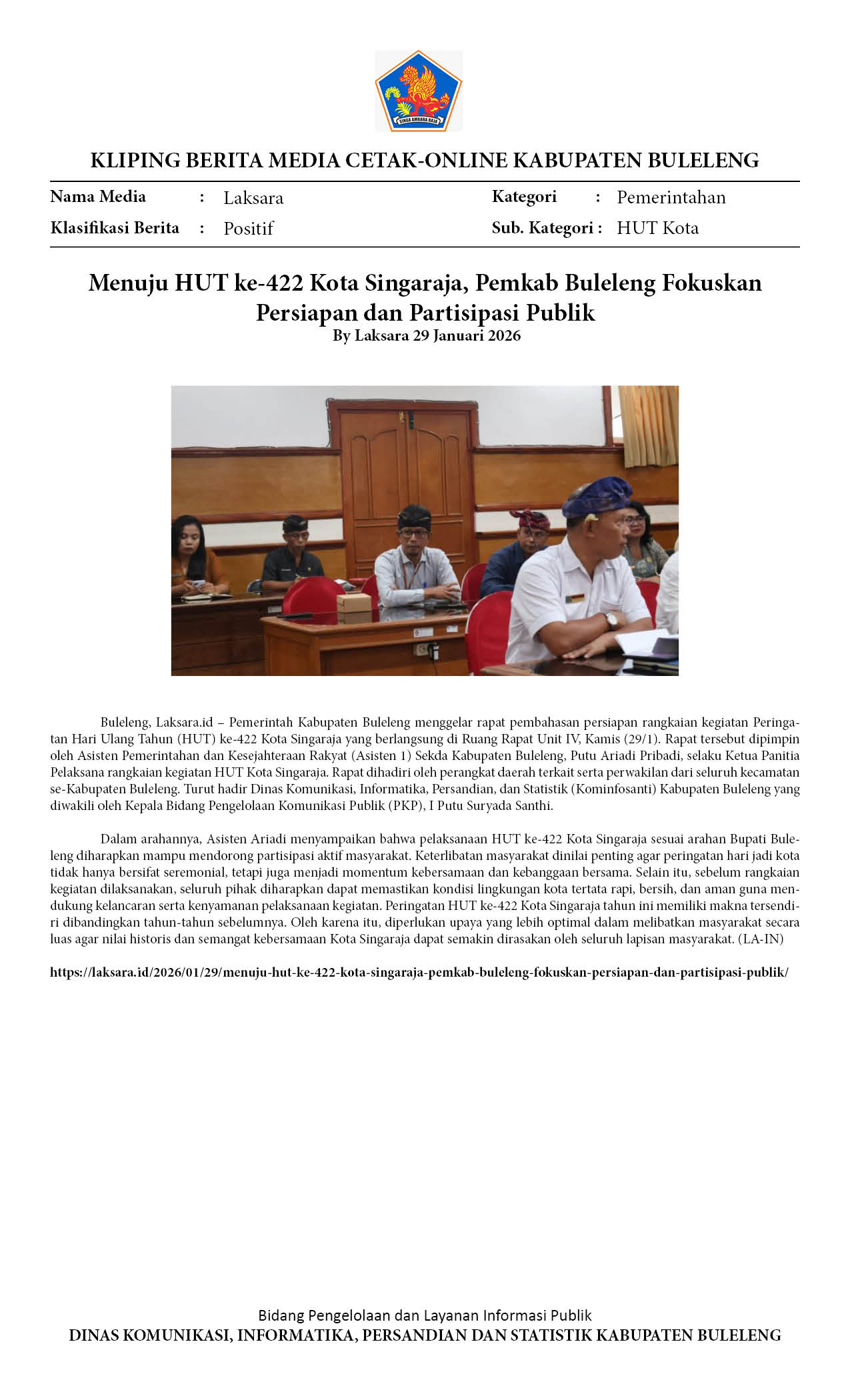 MENUJU HUT KE-422 KOTA SINGARAJA, PEMKAB BULELENG FOKUSKAN PERSIAPAN DAN PARTISIPASI PUBLIK