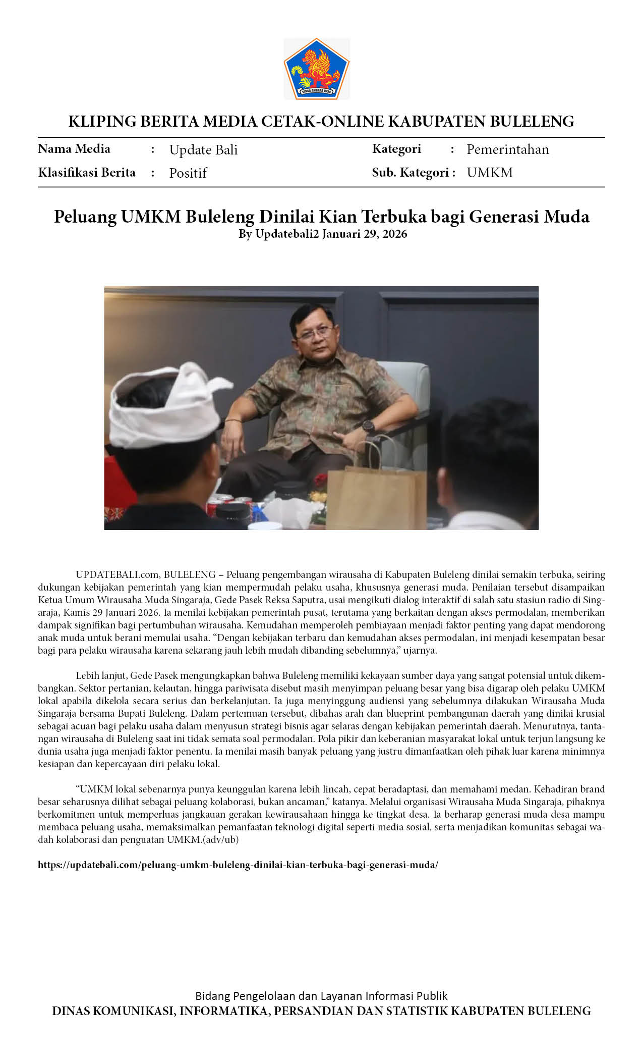 PELUANG UMKM BULELENG DINILAI KIAN TERBUKA BAGI GENERASI MUDA