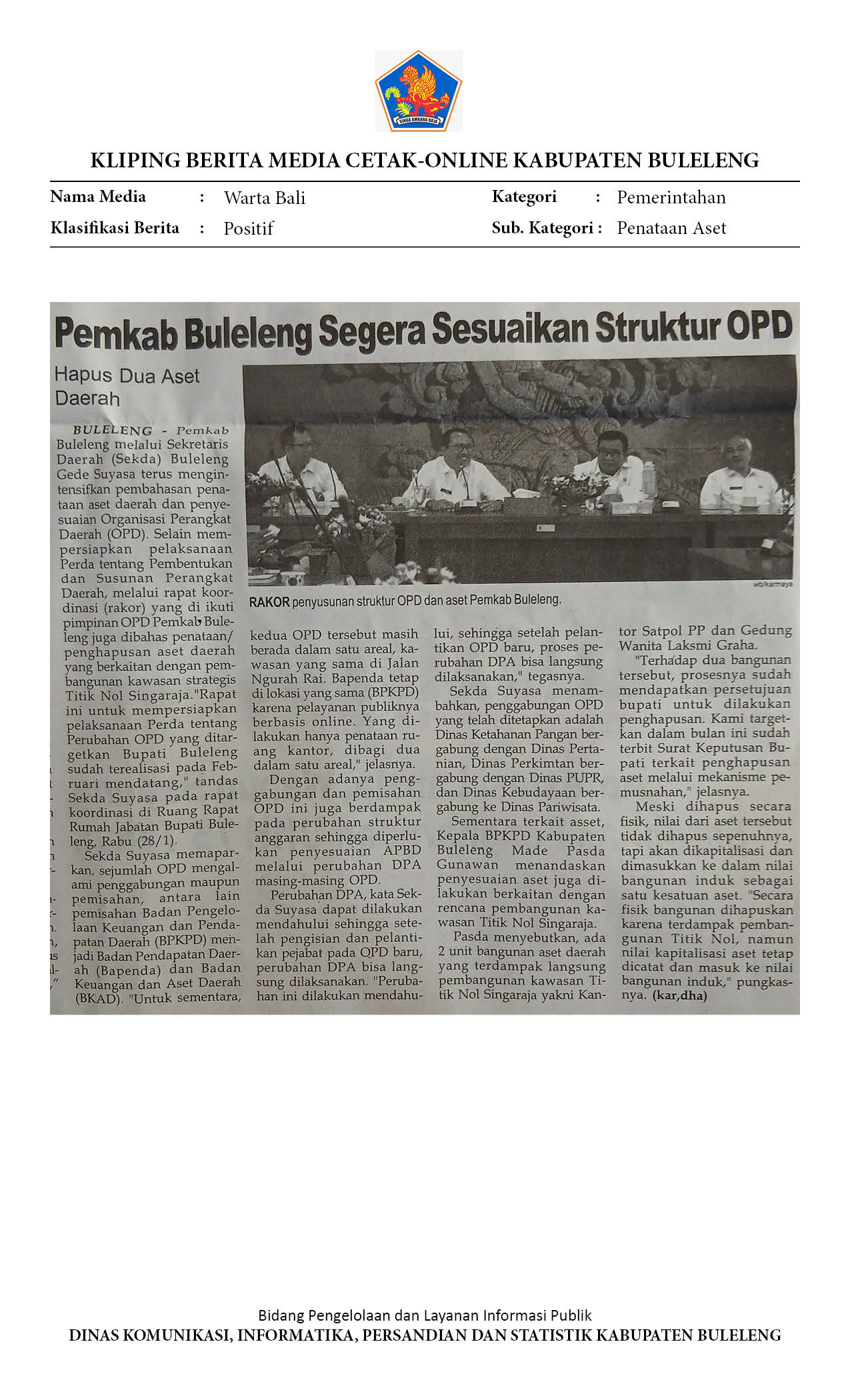 PEMKAB BULELENG BAHAS PENATAAN ASET DAERAH DAN PERUBAHAN STRUKTUR OPD