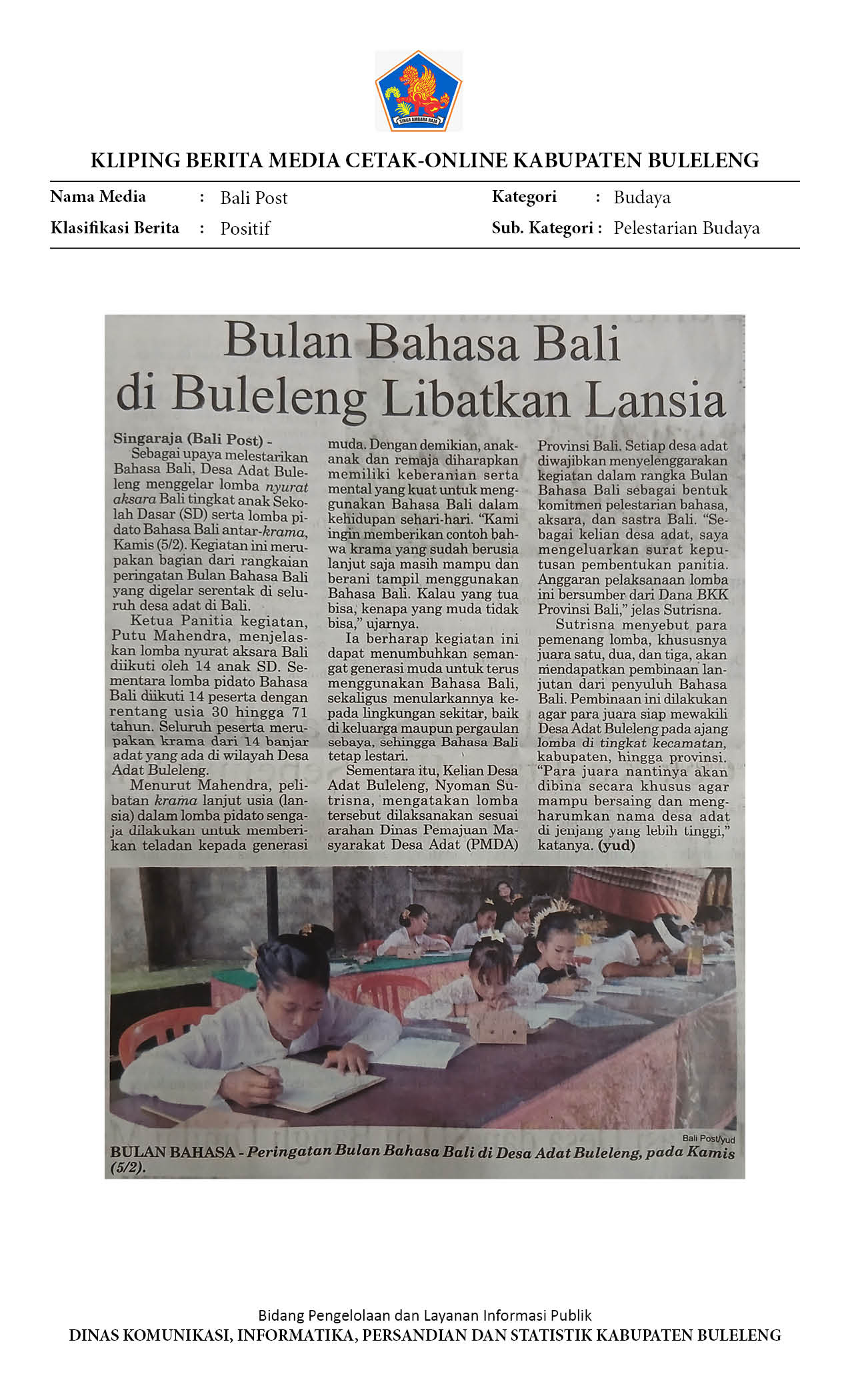 DESA ADAT BULELENG GELAR LOMBA NYURAT AKSARA BALI DAN PIDATO KRAMA LESTARIKAN BAHASA IBU