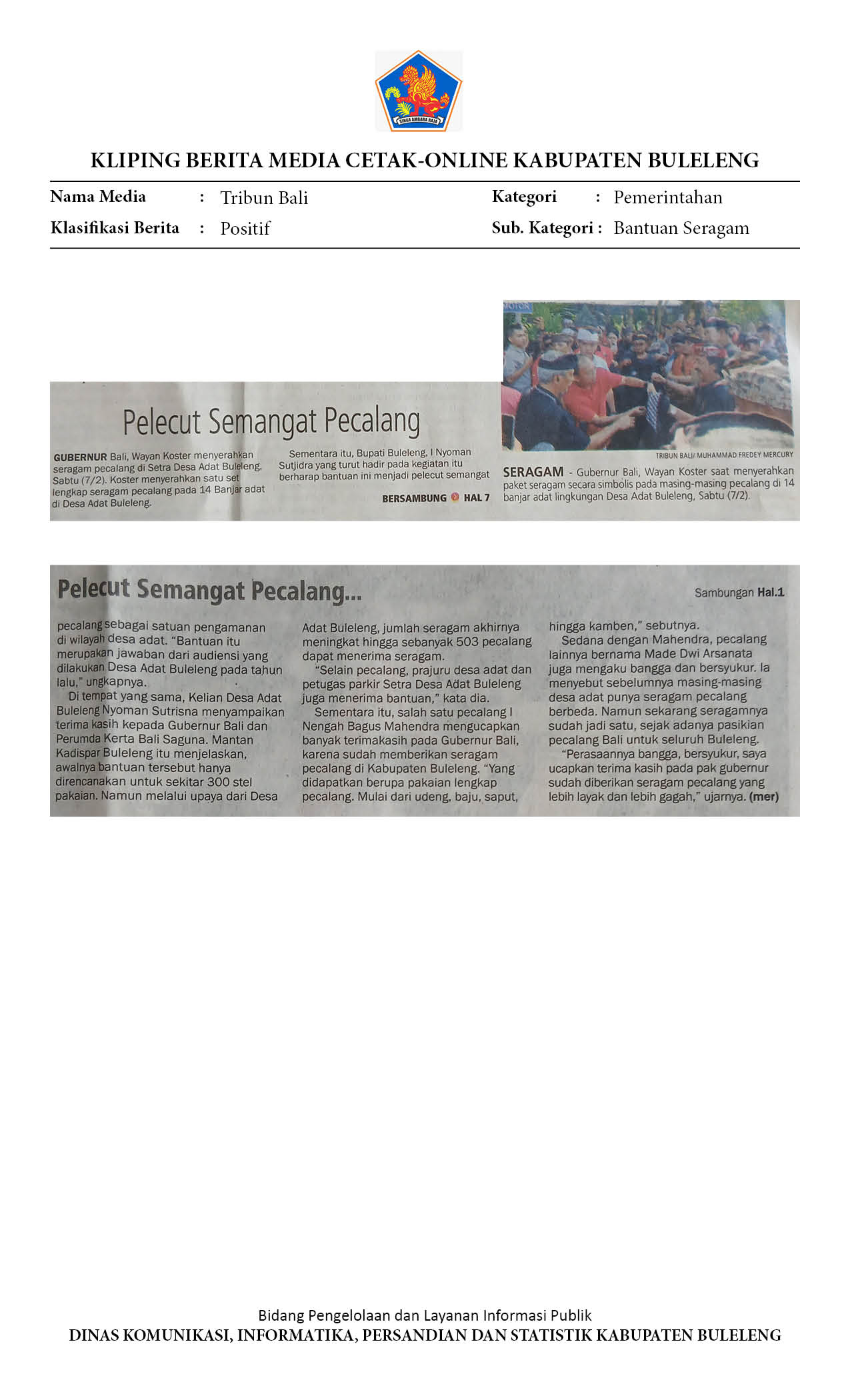 NGAYAH TANPA PAMRIH, GUBERNUR KOSTER BANTU SERAGAM 503 PECALANG BULELENG