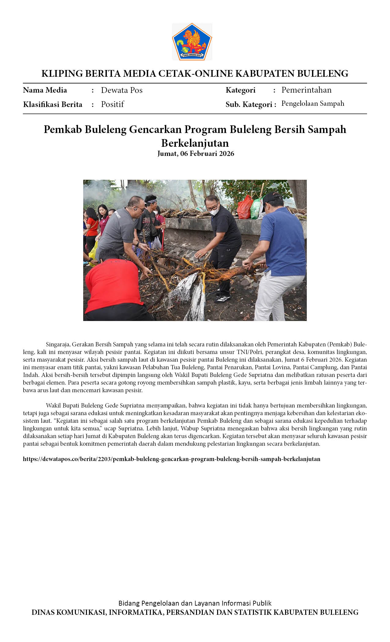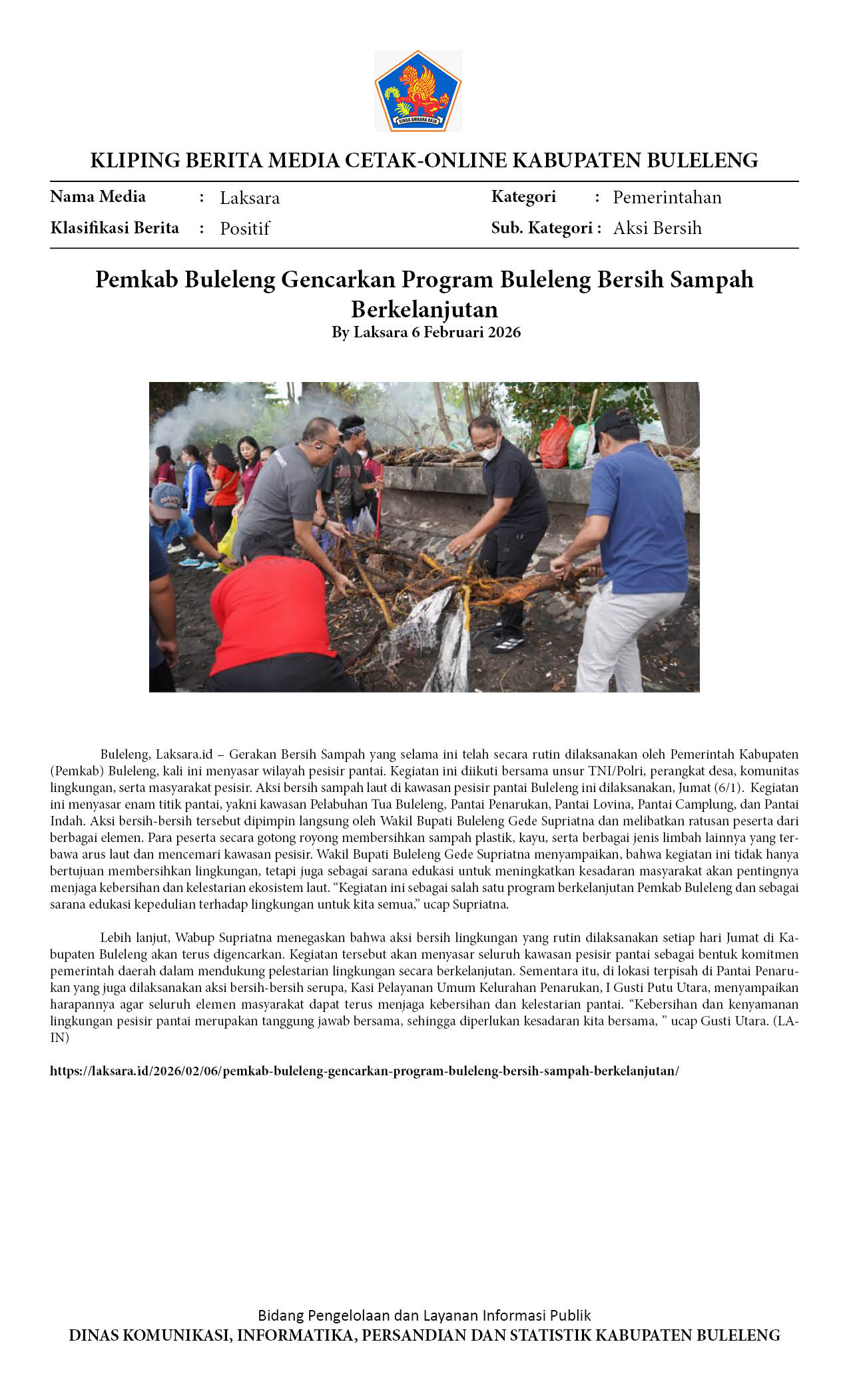 PEMKAB BULELENG GENCARKAN PROGRAM BULELENG BERSIH SAMPAH BERKELANJUTAN