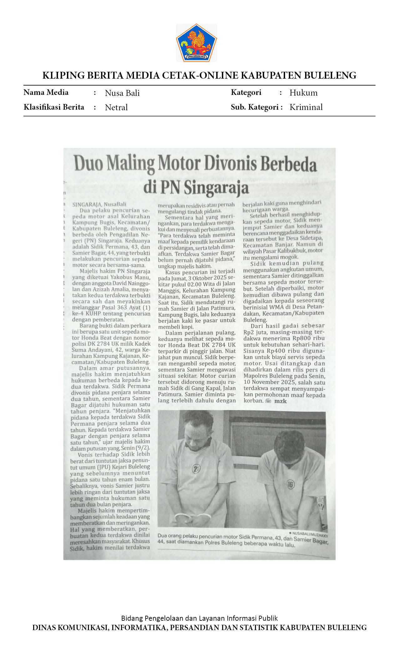 DUO MALING MOTOR DIVONIS BERBEDA DI PN SINGARAJA