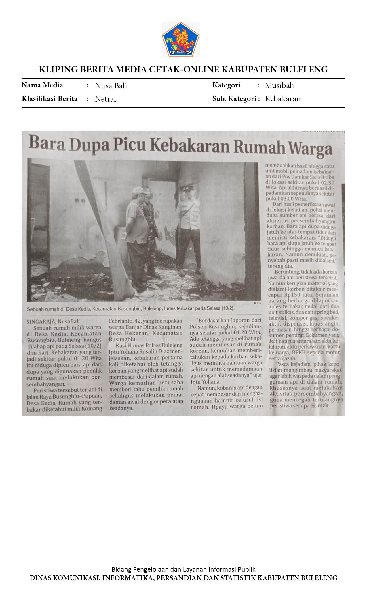 DUPA DIDUGA JADI PENYEBAB KEBAKARAN RUMAH FEBRIANTO