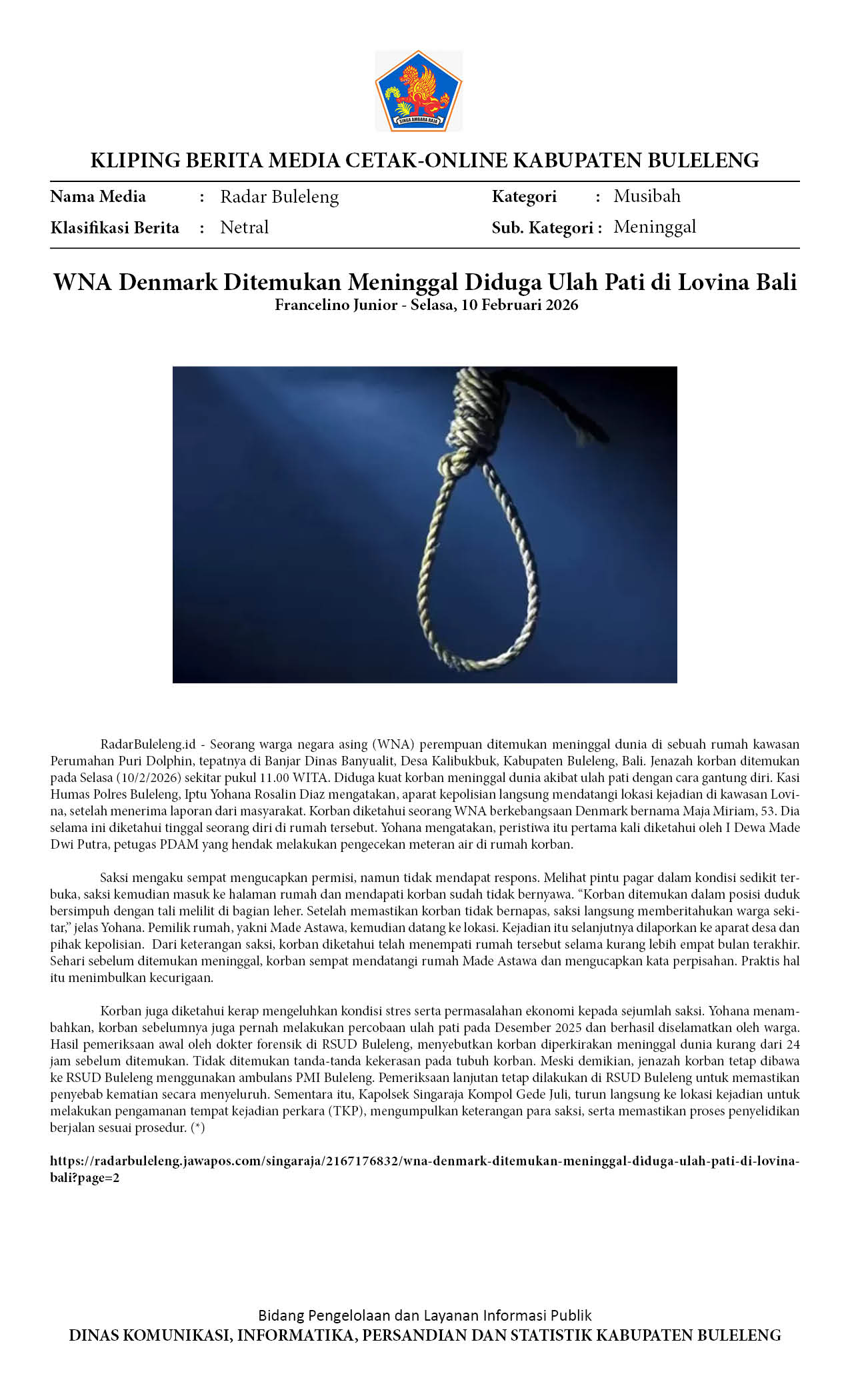 WNA DENMARK DITEMUKAN TEWAS DI PERUMAHAN BANYUALIT BULELENG, POLISI DUGAAN KUAT GANTUNG DIRI