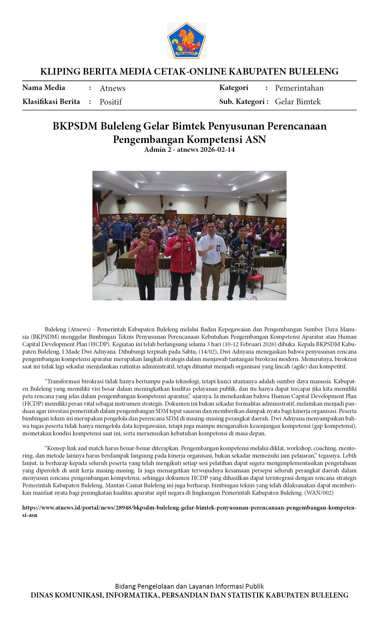 BKPSDM BULELENG LAKSANAKAN BIMTEK PENYUSUNAN PERENCANAAN PENGEMBANGAN KOMPETENSI ASN