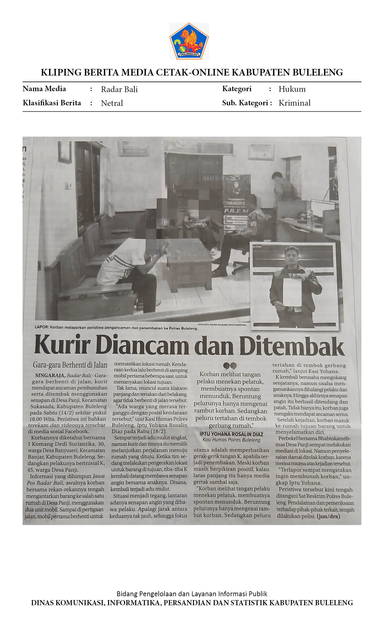 ADU MULUT SOAL PARKIR BERUJUNG PENODONGAN. KURIR NYARIS TEWAS TERTEMBAK SENAPAN ANGIN DI BULELENG BALI