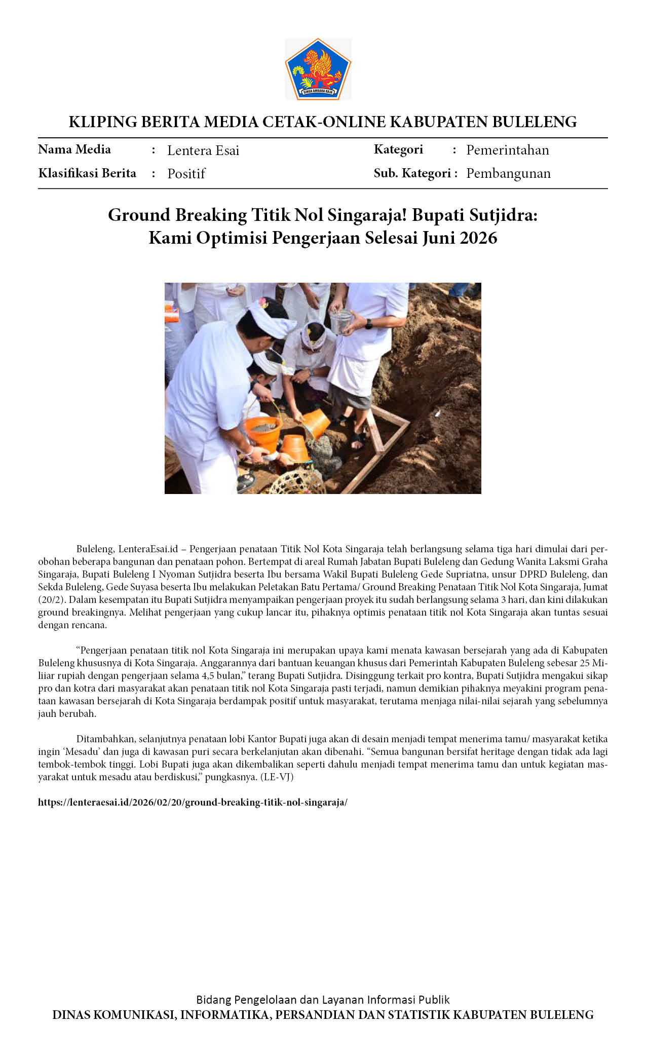 PROYEK TITIK NOL SINGARAJA DIMULAI