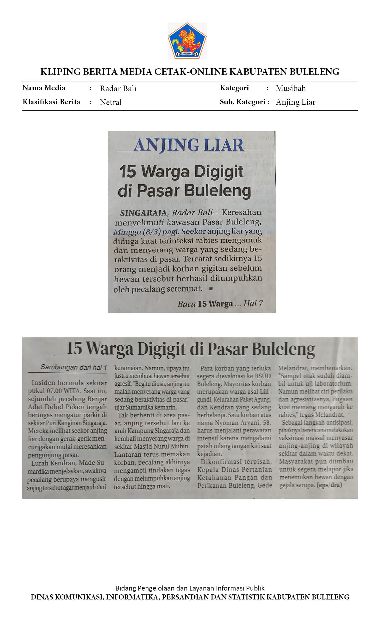 ANJING DIDUGA RABIES MENGAMUK DI PASAR BULELENG. 15 ORANG TERGIGIT, SATU ALAMI PATAH TULANG