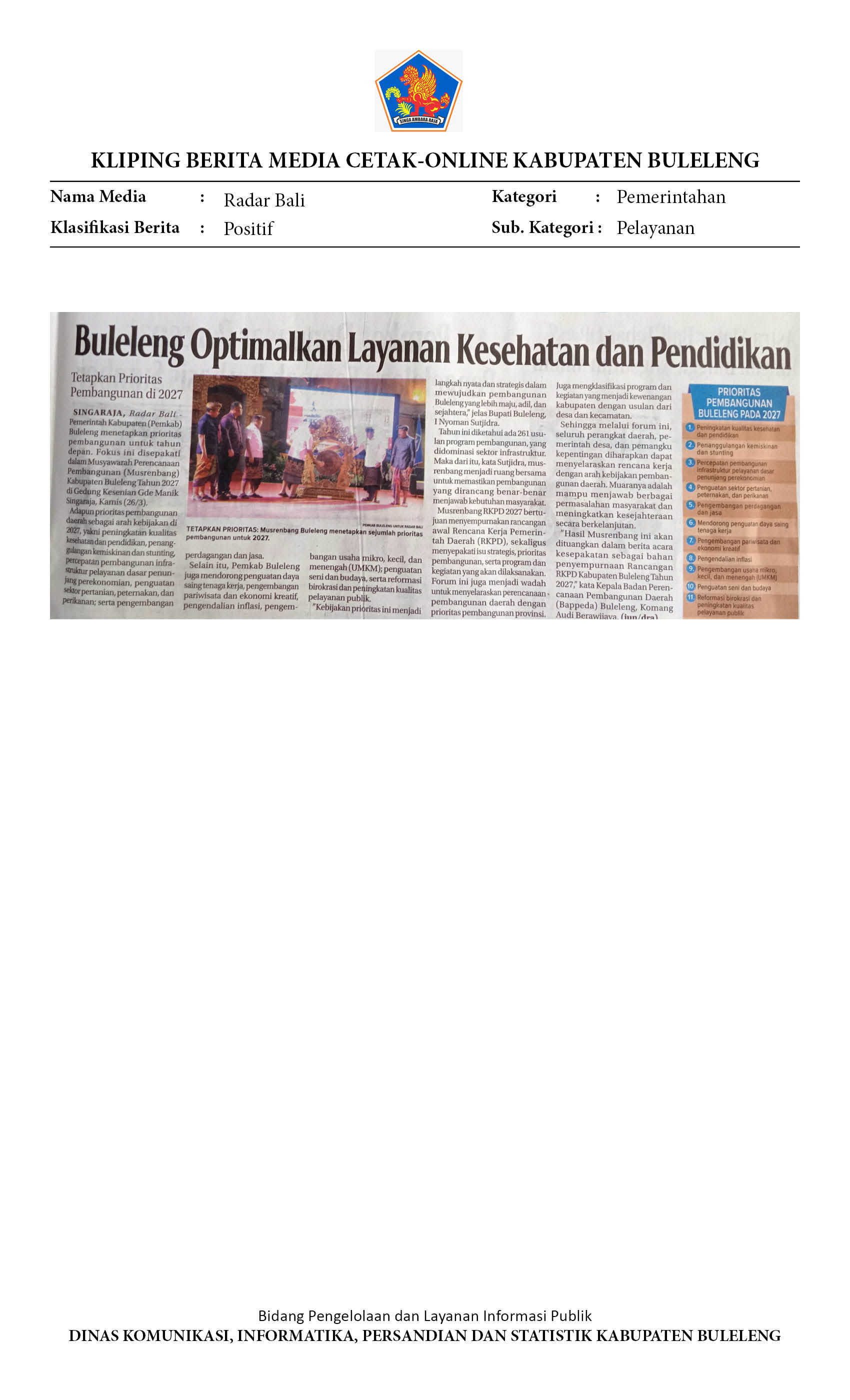 BULELENG OPTIMALKAN LAYANAN KESEHATAN DAN PENDIDIKAN