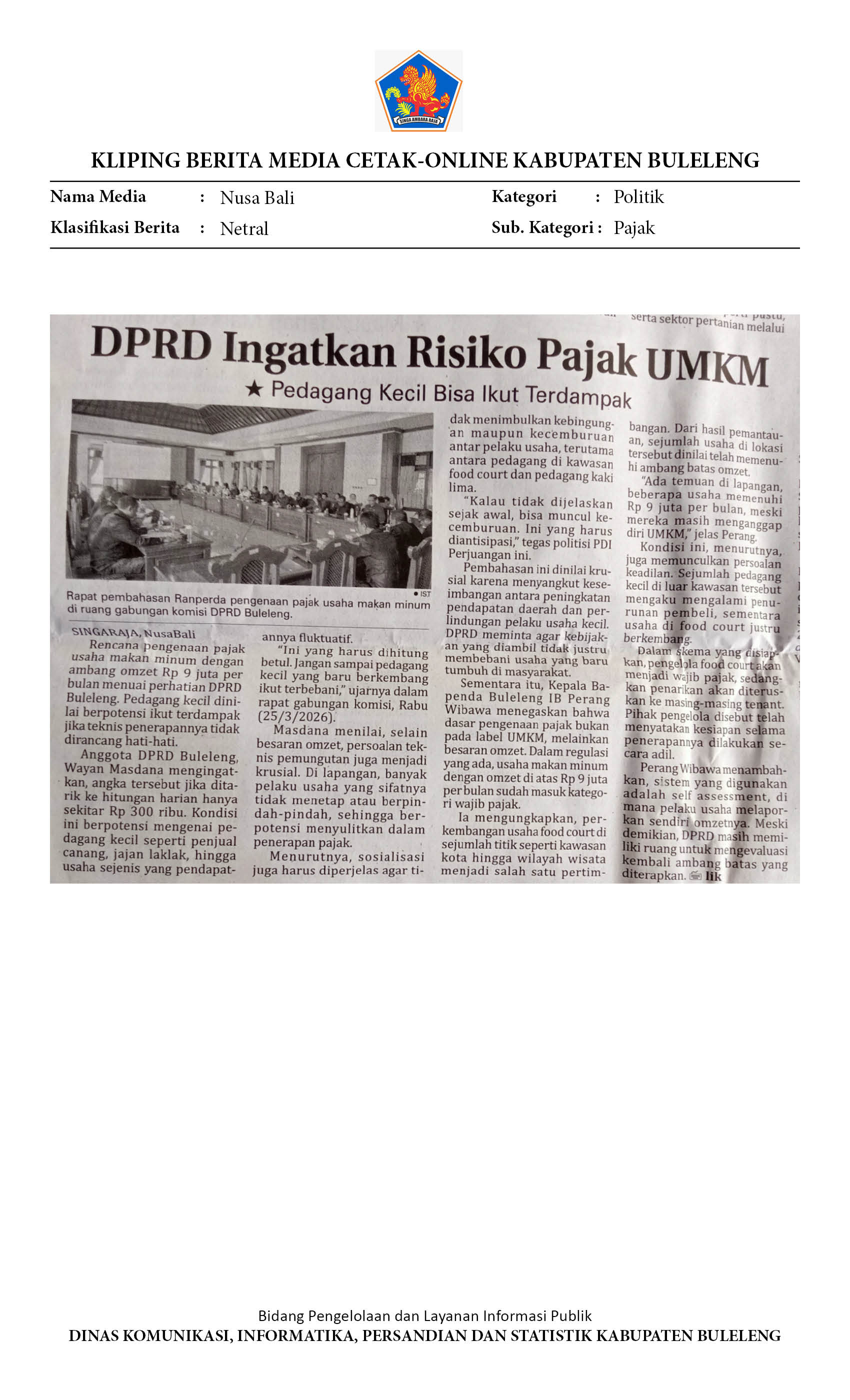 DPRD INGATKAN RISIKO PAJAK UMKM