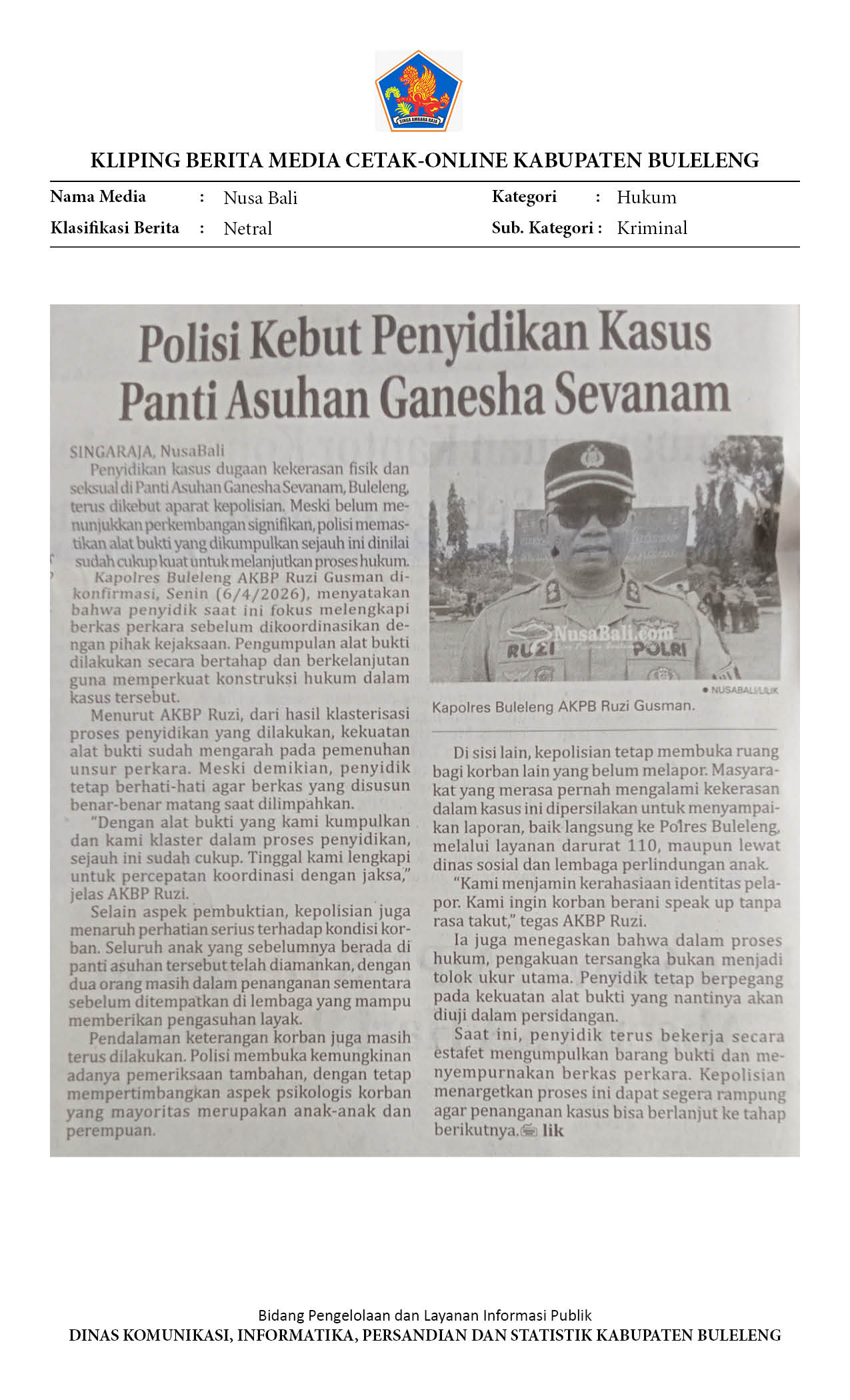 POLISI MASIH LENGKAPI BUKTI KASUS DUGAAN KEKERASAN SEKSUAL DI BULELENG