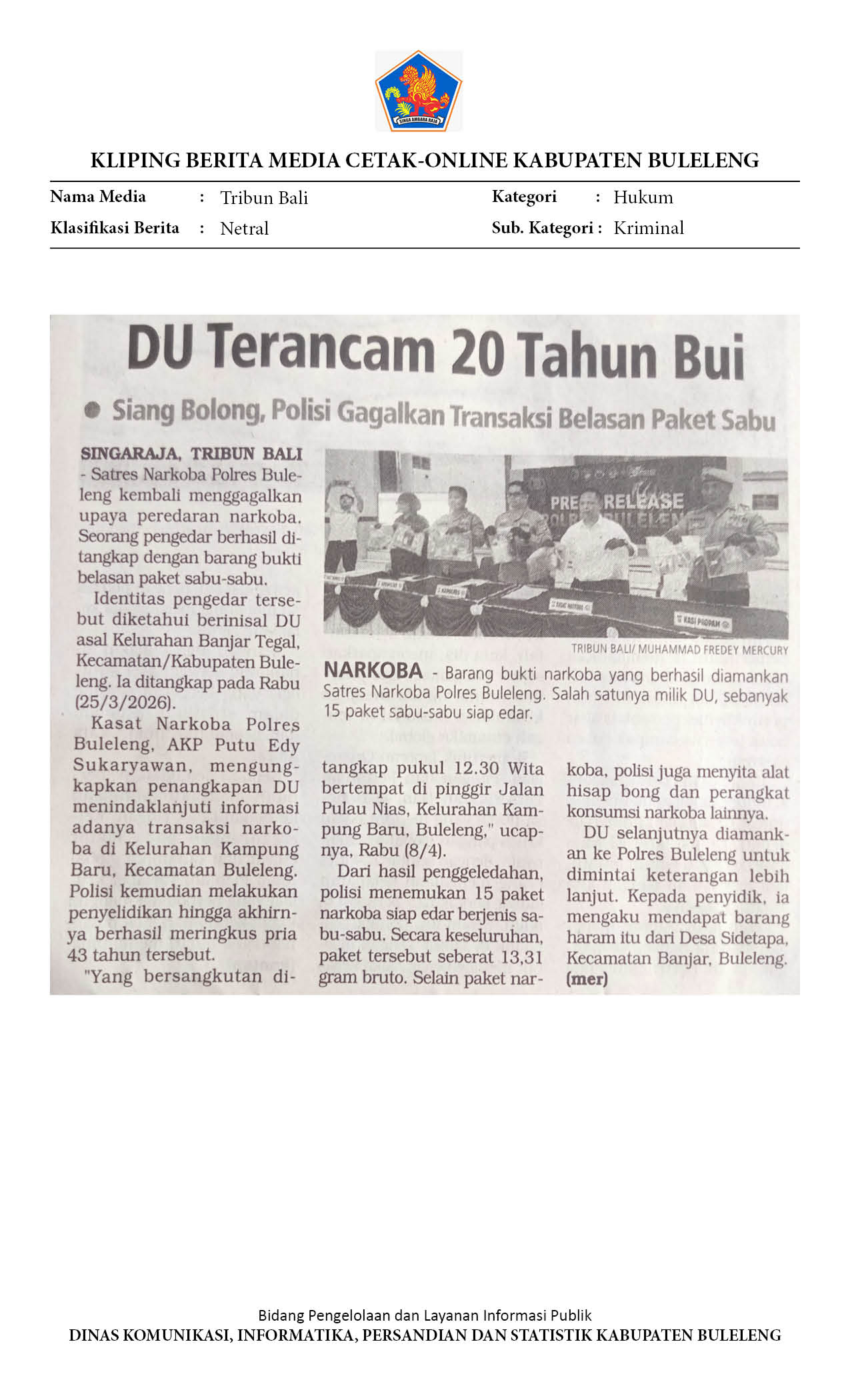 SAT NARKOBA POLRES BULELENG TANGKAP PENGEDAR, SABU 10,10 GRAM DISITA SAAT TRANSAKSI PINGGIR JALAN