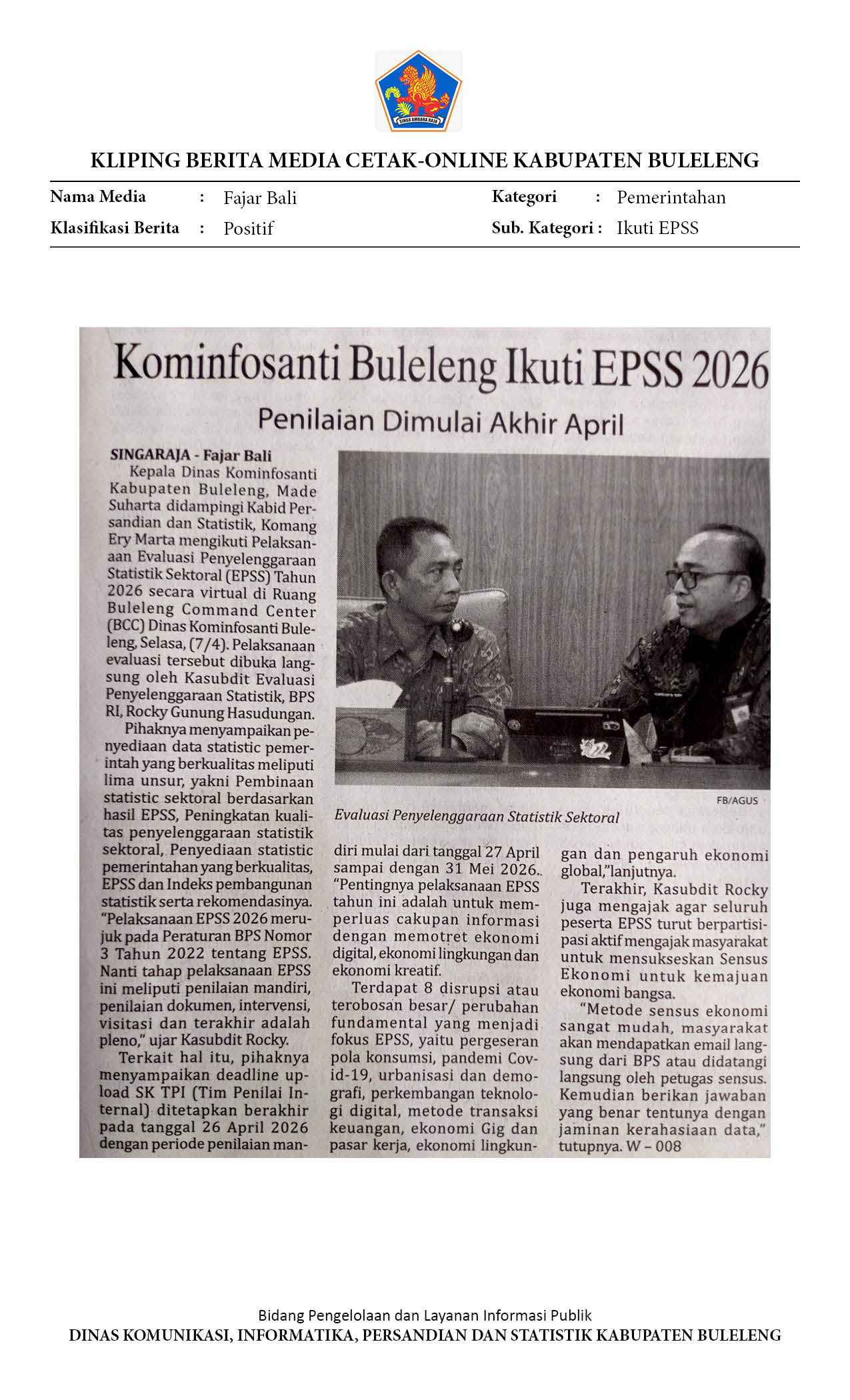 KOMINFOSANTI BULELENG IKUTI EPSS 2026, PENILAIAN DIMULAI 27 APRIL