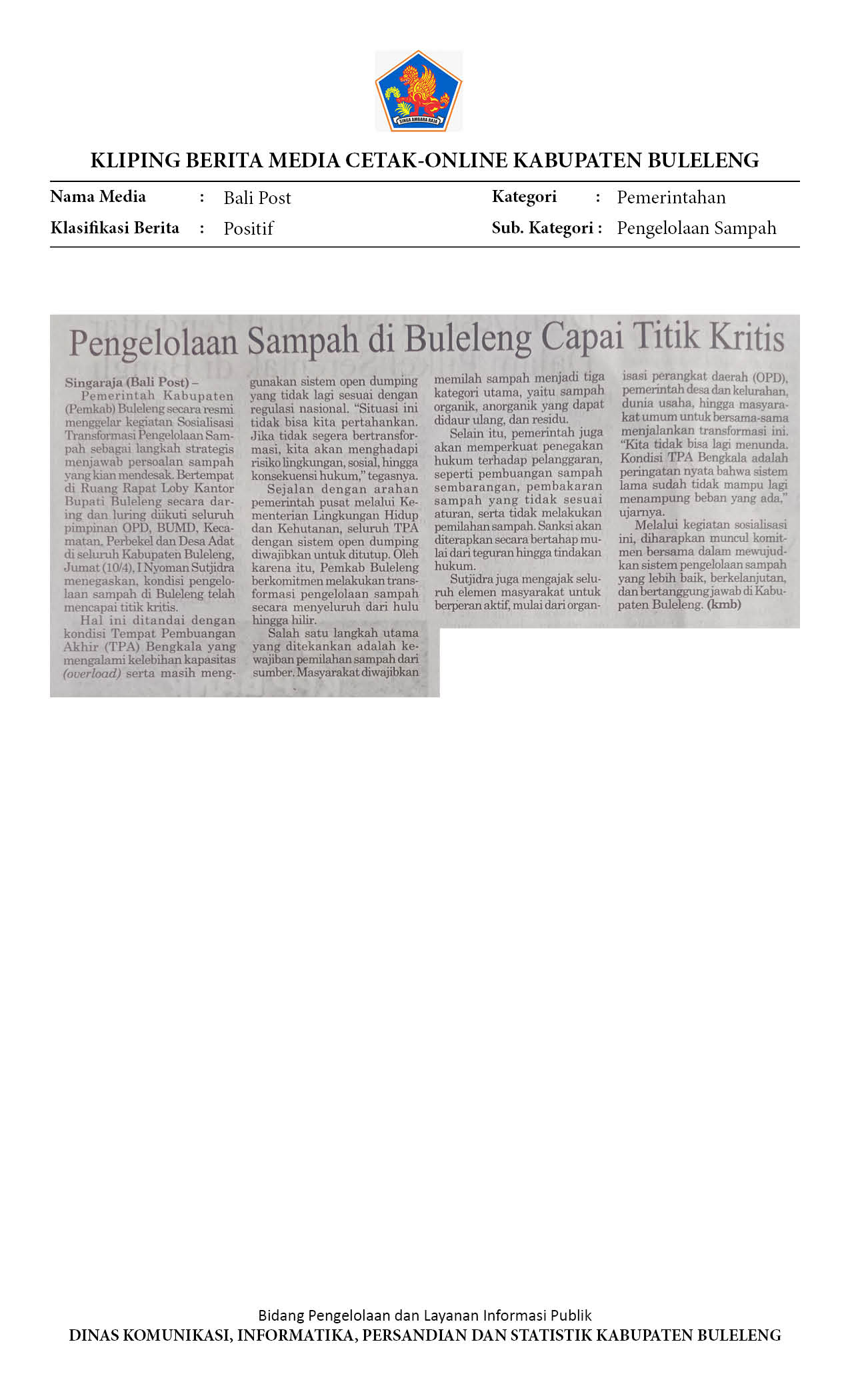 PENGELOLAAN SAMPAH DI BULELENG CAPAI TITIK KRITIS