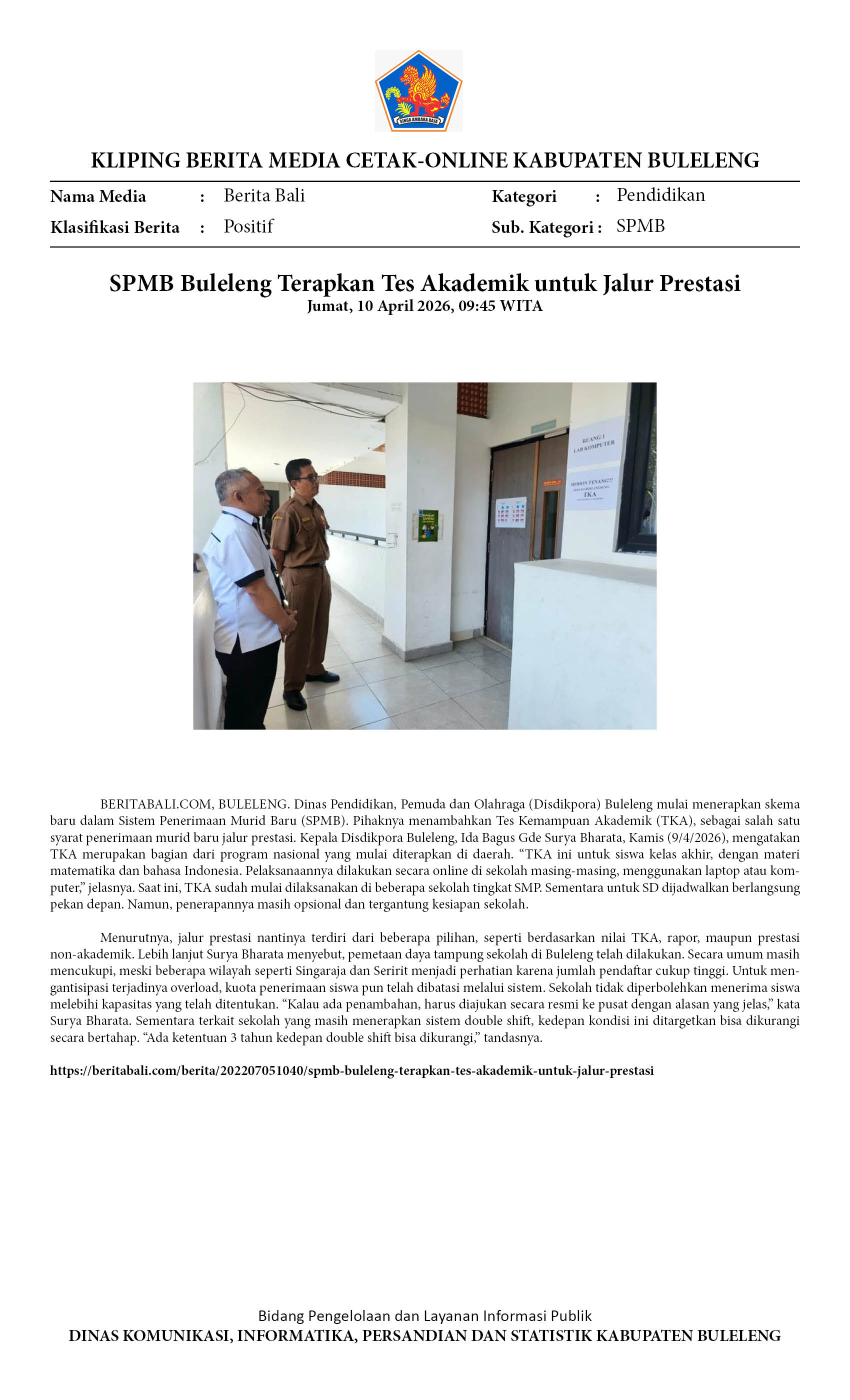 SPMB BULELENG TERAPKAN TES AKADEMIK UNTUK JALUR PRESTASI